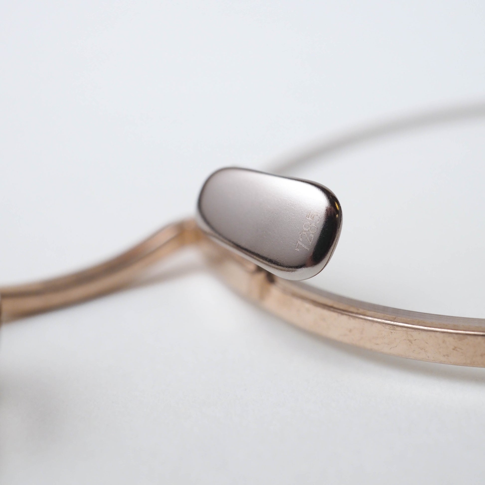 テンプルや各パーツのディテールには、時計本体のケース、ベルトの尾錠、ダイアルなどのフォルムをサンプリングし、眼鏡として再構築しています。単なるモチーフ使いではなく、造形そのものに落とし込んでいるのがこのモデルの特徴です。