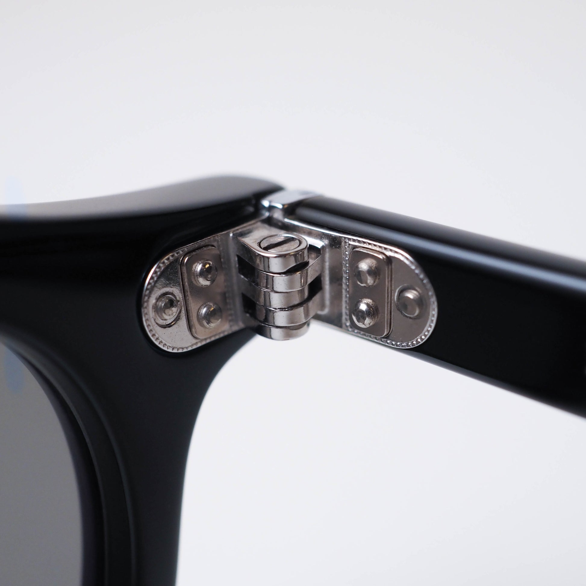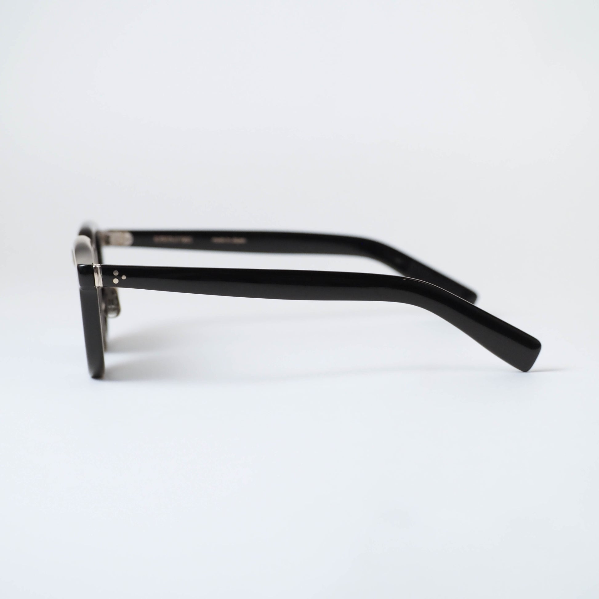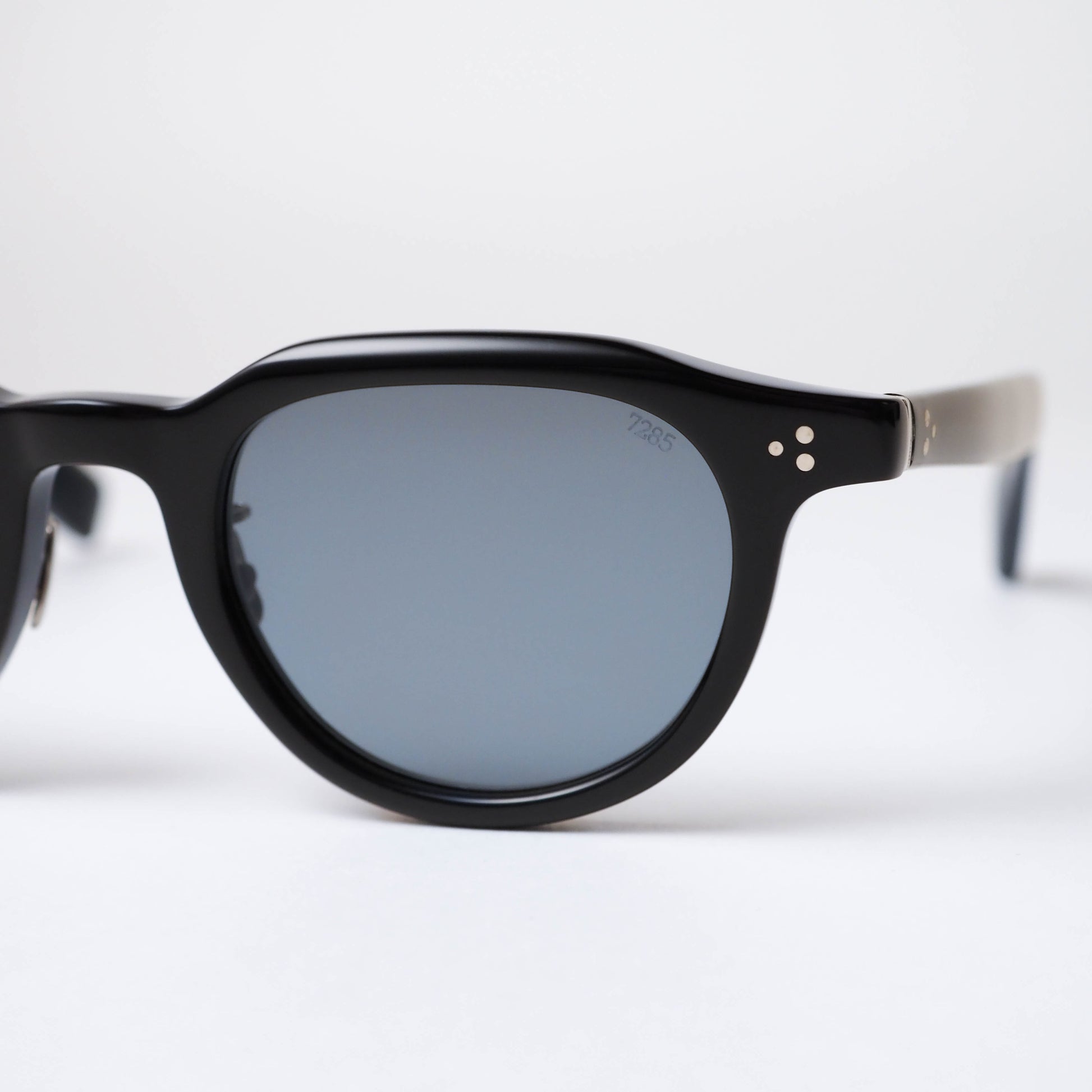フロントとテンプルを繋ぐのは、このモデルのために製作された“ミリタリー丁番”。ブランドのアイコンパーツでもある2+1PIN(ひとつだけ異なる大きさのPIN)構造を採用し、さりげない違和感と精度の高さを両立しています。細部にまで意図が感じられる、EYEVAN7285らしいディテールです。