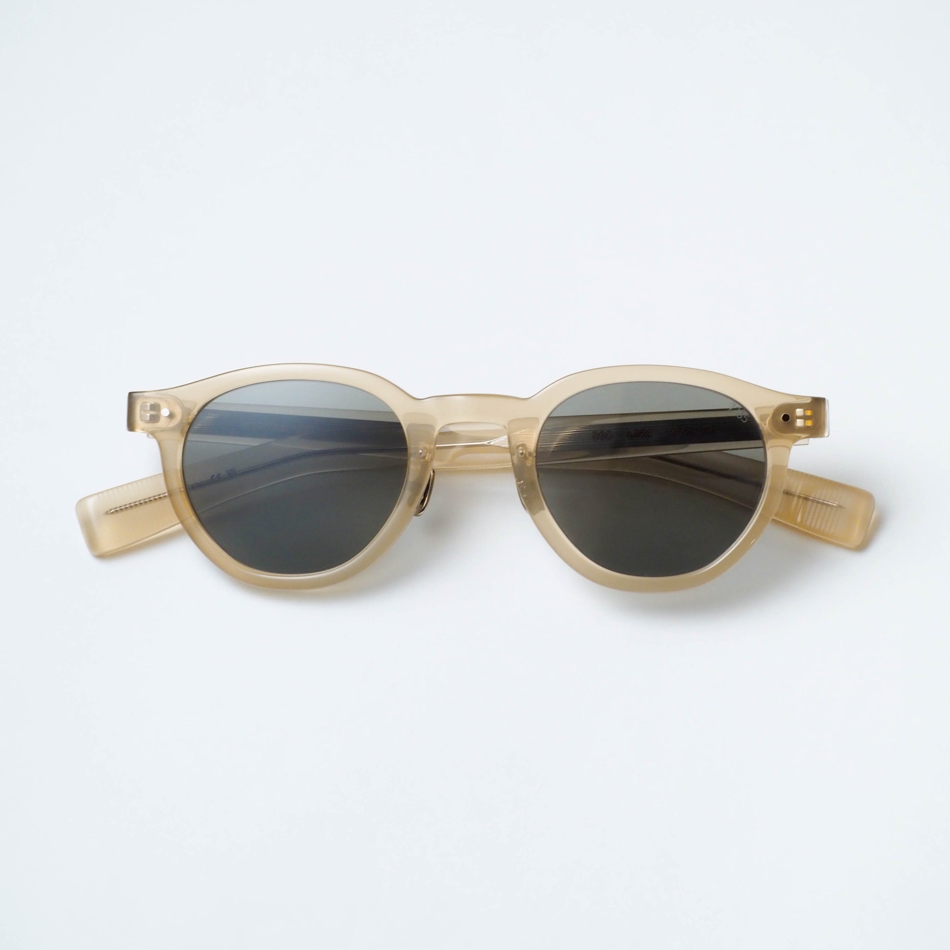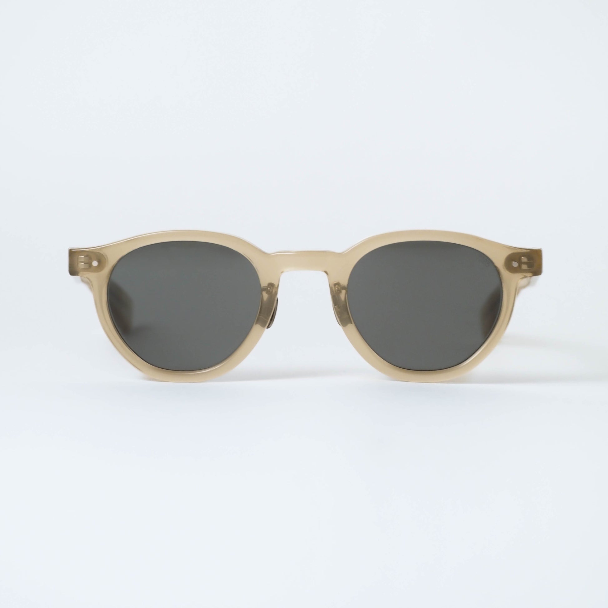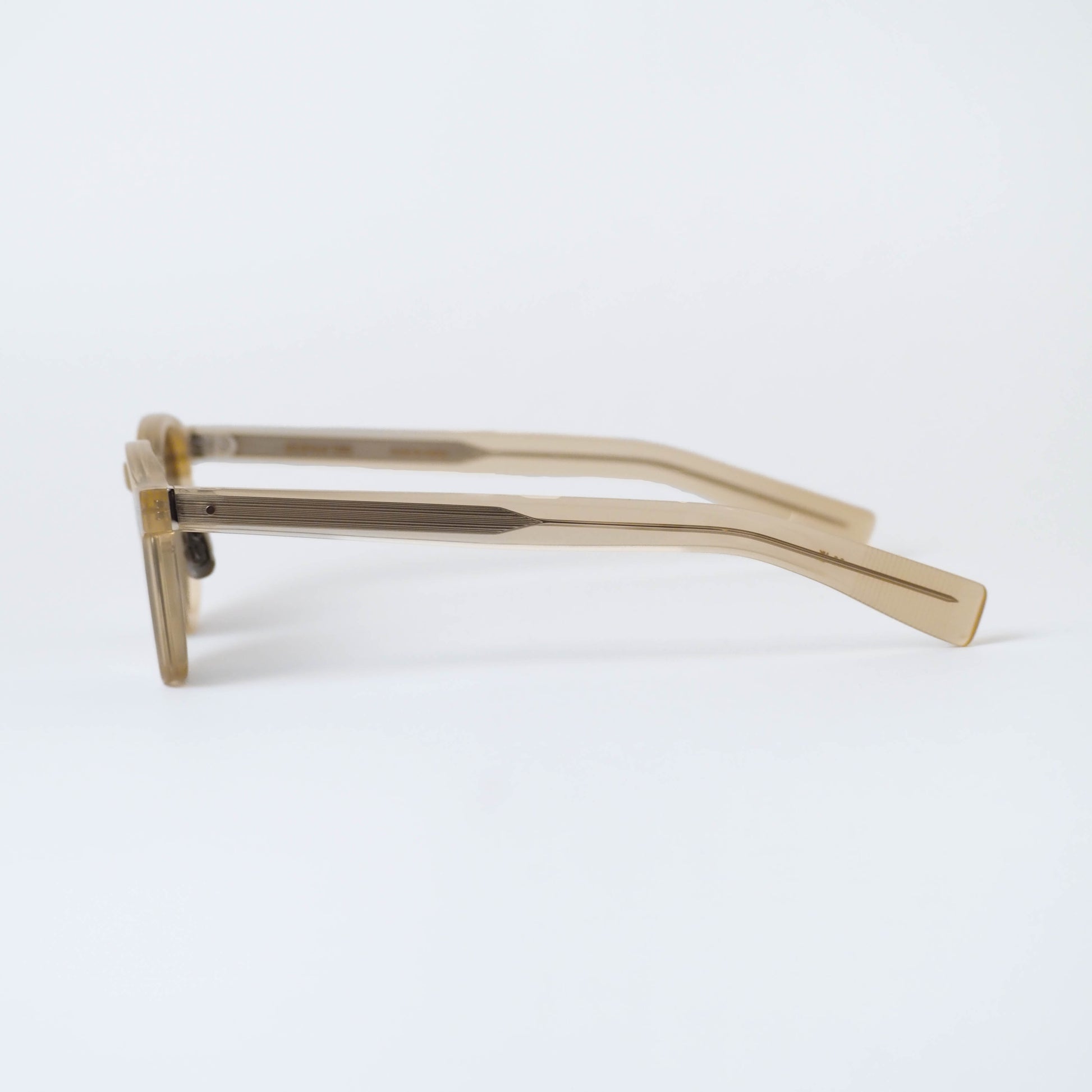 col.324は、クリアベージュ柔らかなニュアンスに加え、ガラスレンズ特有の透明感が際立つカラーレンズ仕様。奥行きのある発色が、シンプルなフロントデザインに自然な深みを与えます。