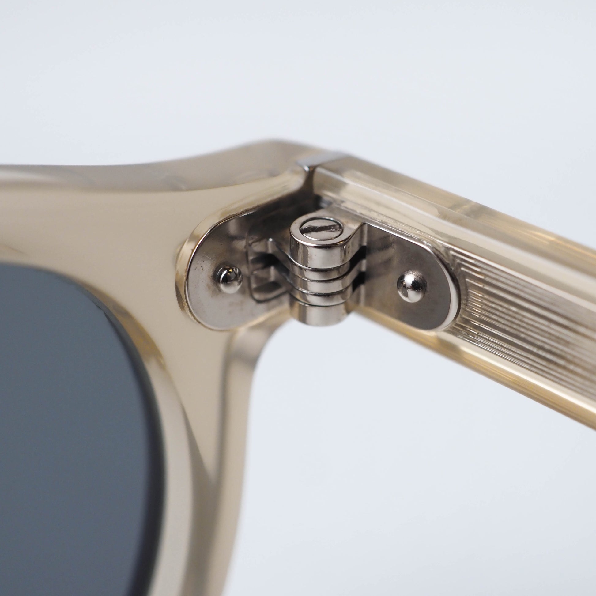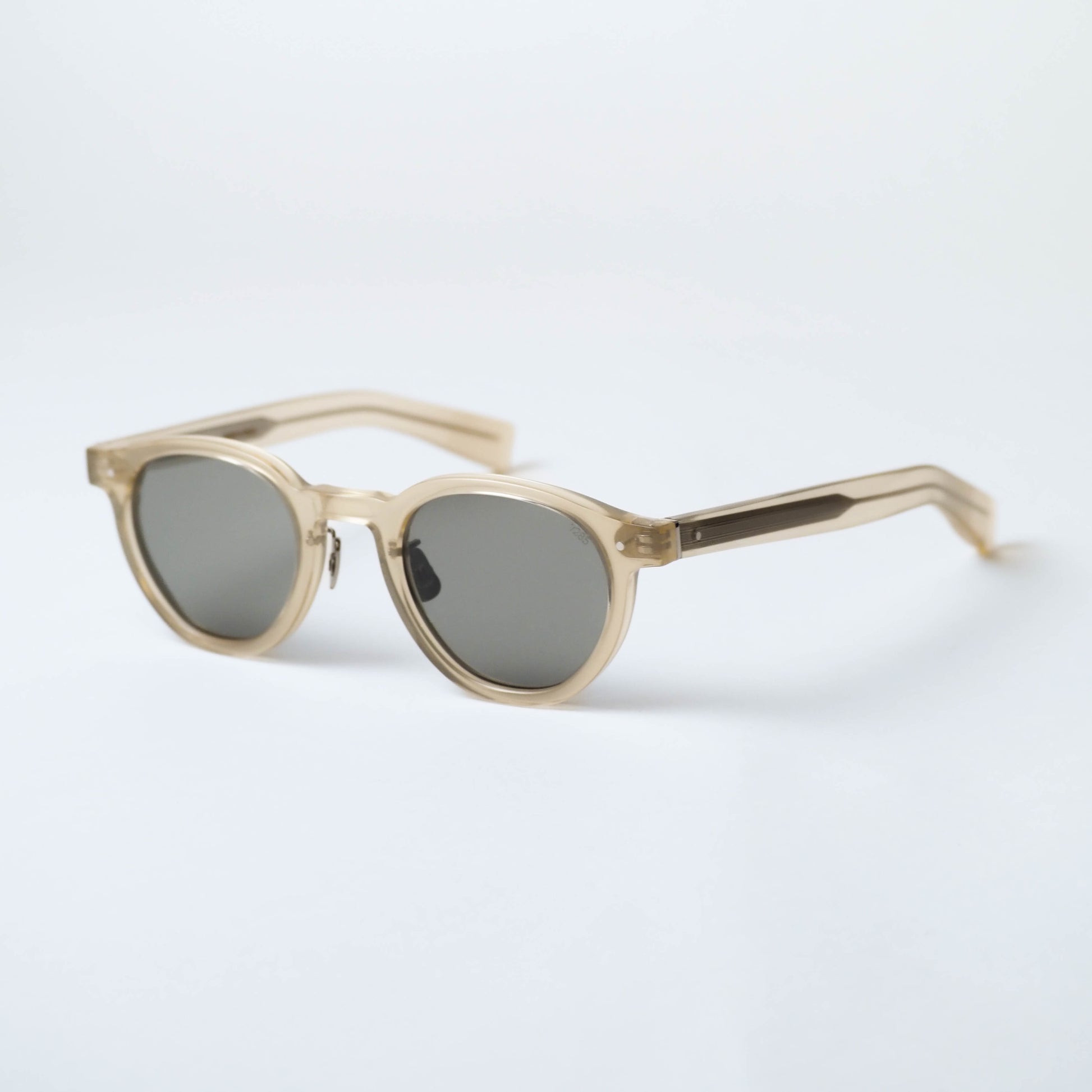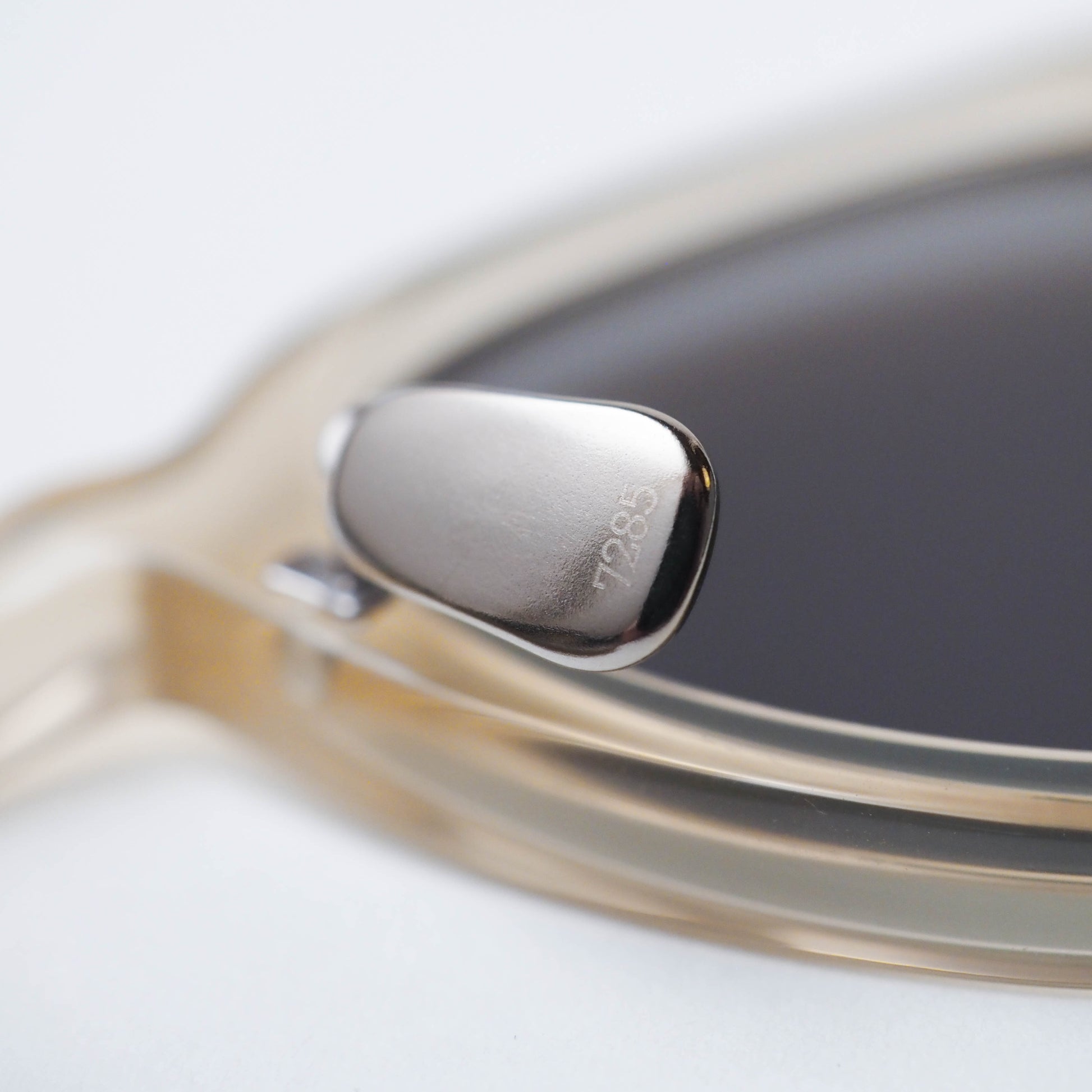 col.324は、クリアベージュ柔らかなニュアンスに加え、ガラスレンズ特有の透明感が際立つカラーレンズ仕様。奥行きのある発色が、シンプルなフロントデザインに自然な深みを与えます。