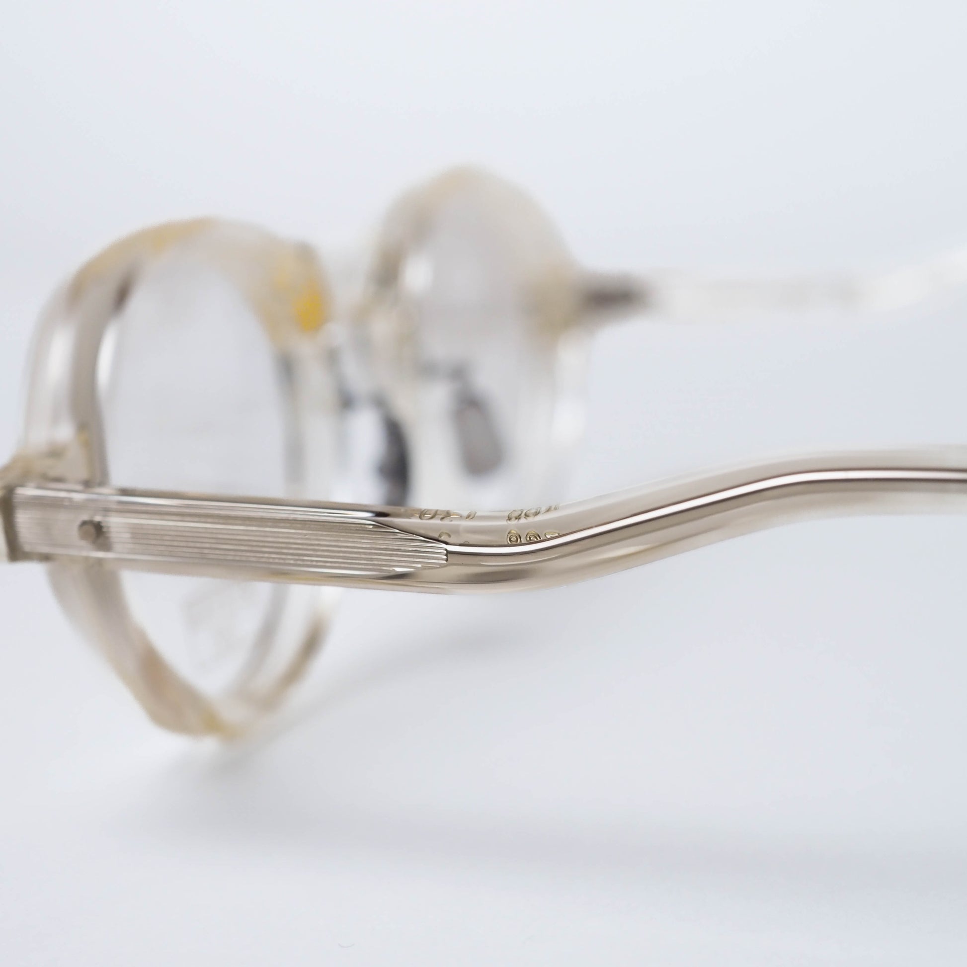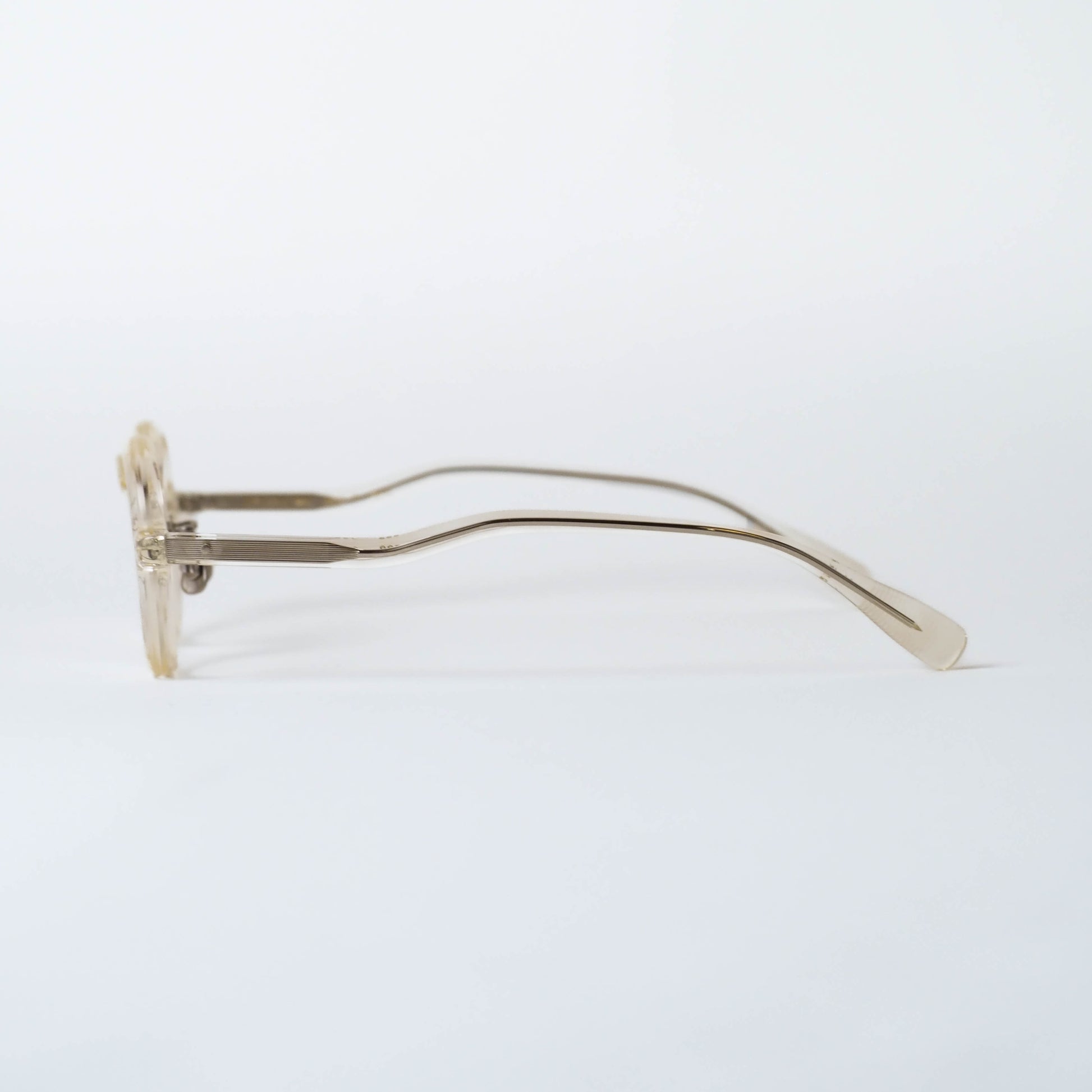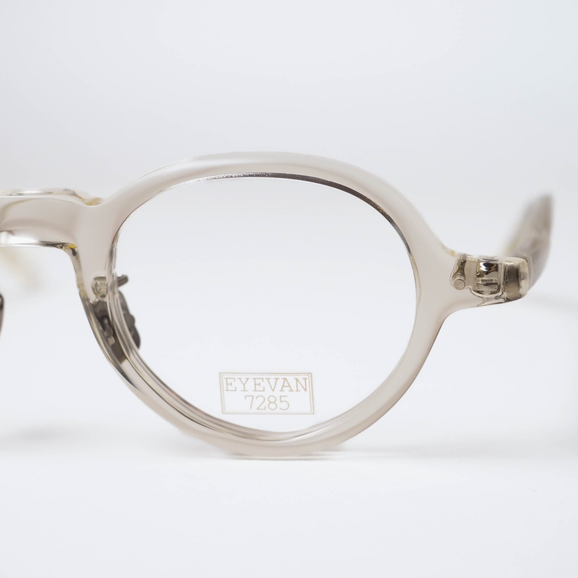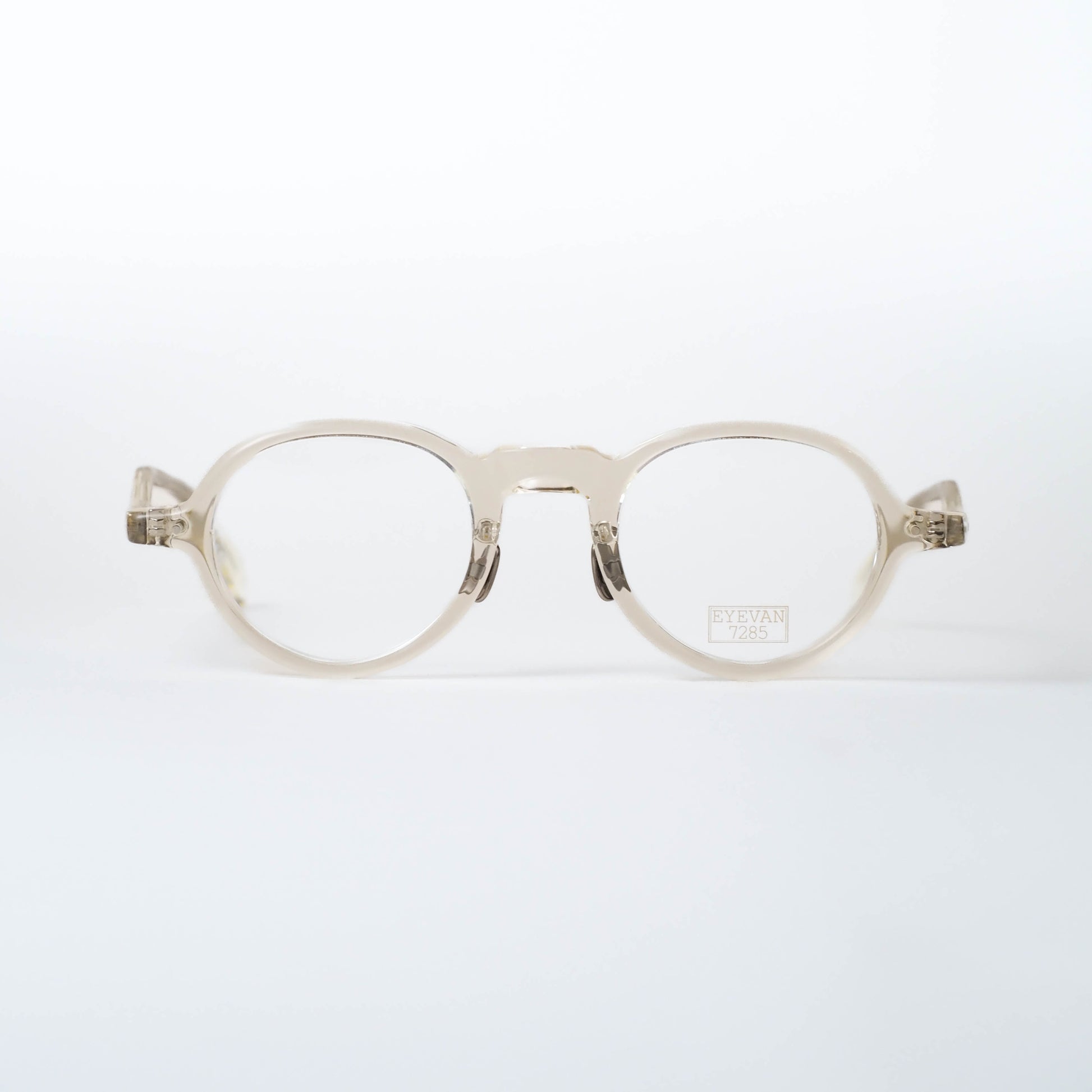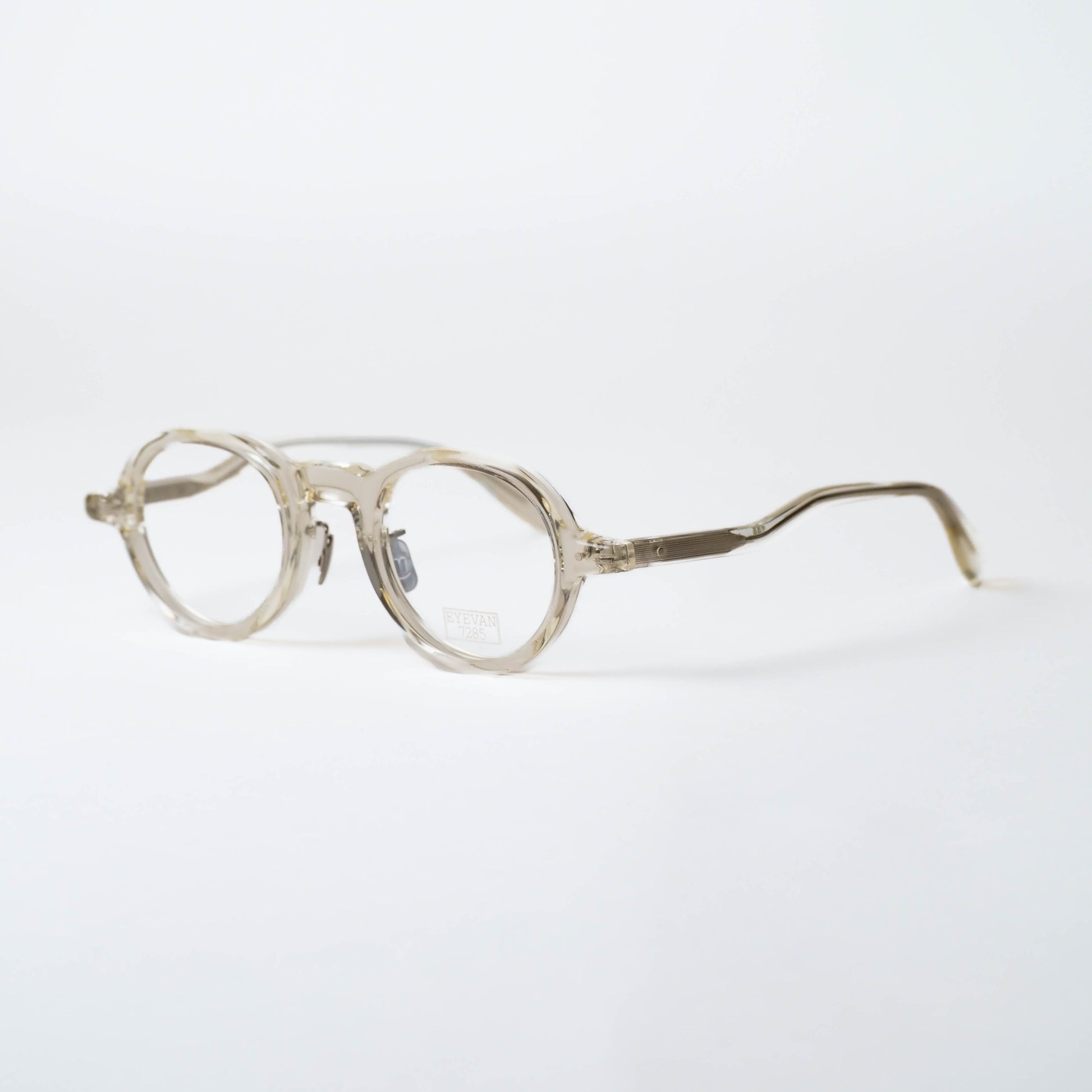col.307は、柔らかな透明感を持つキハク色。肌馴染みがよく、フレームの存在感を程よく和らげてくれるため、小ぶりなボストンシェイプのバランスがより際立ちます。軽やかさがありながらも、EYEVAN7285らしい造形の奥行きをしっかりと感じられるカラーです。