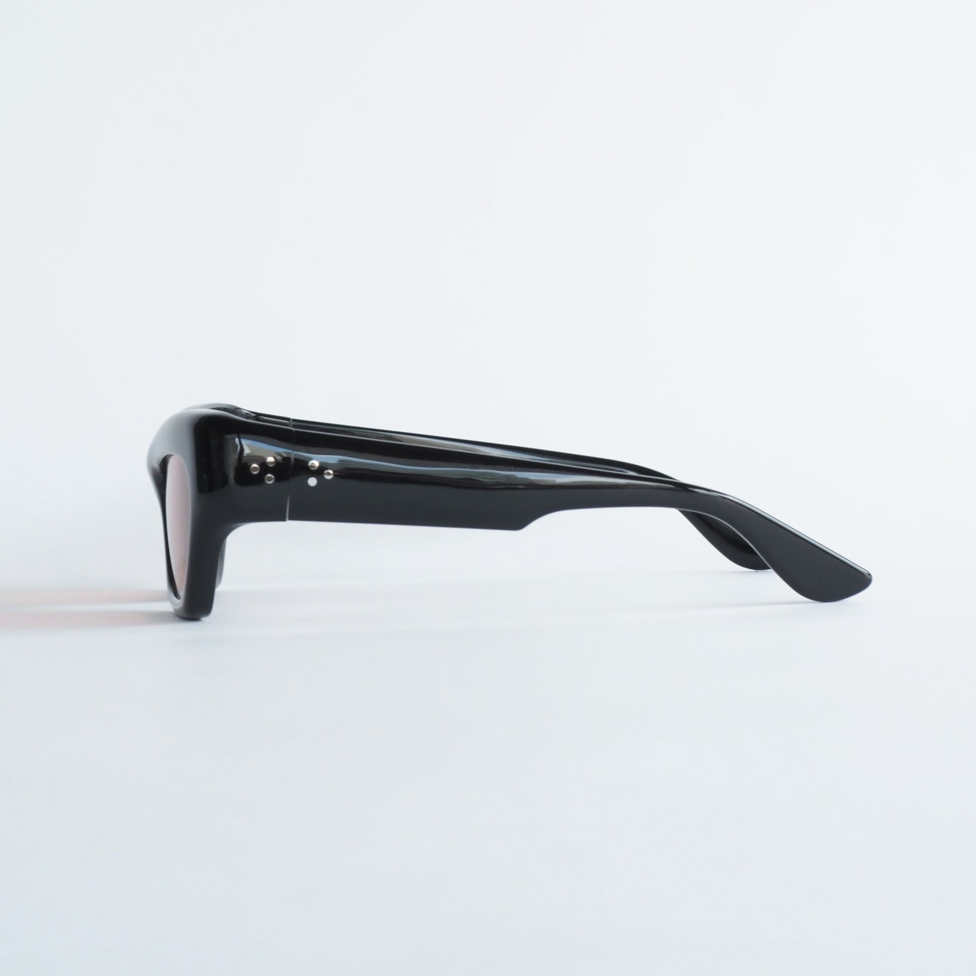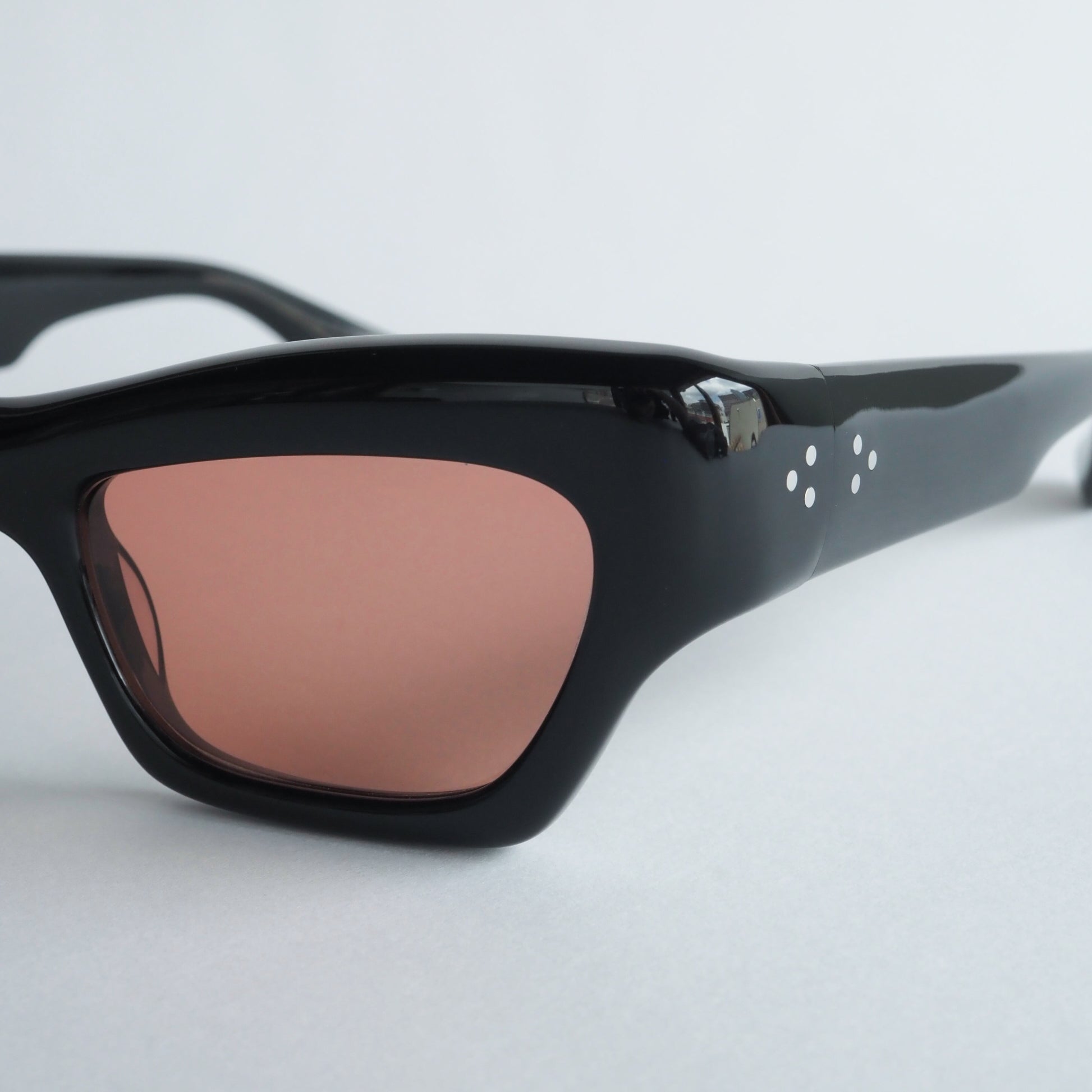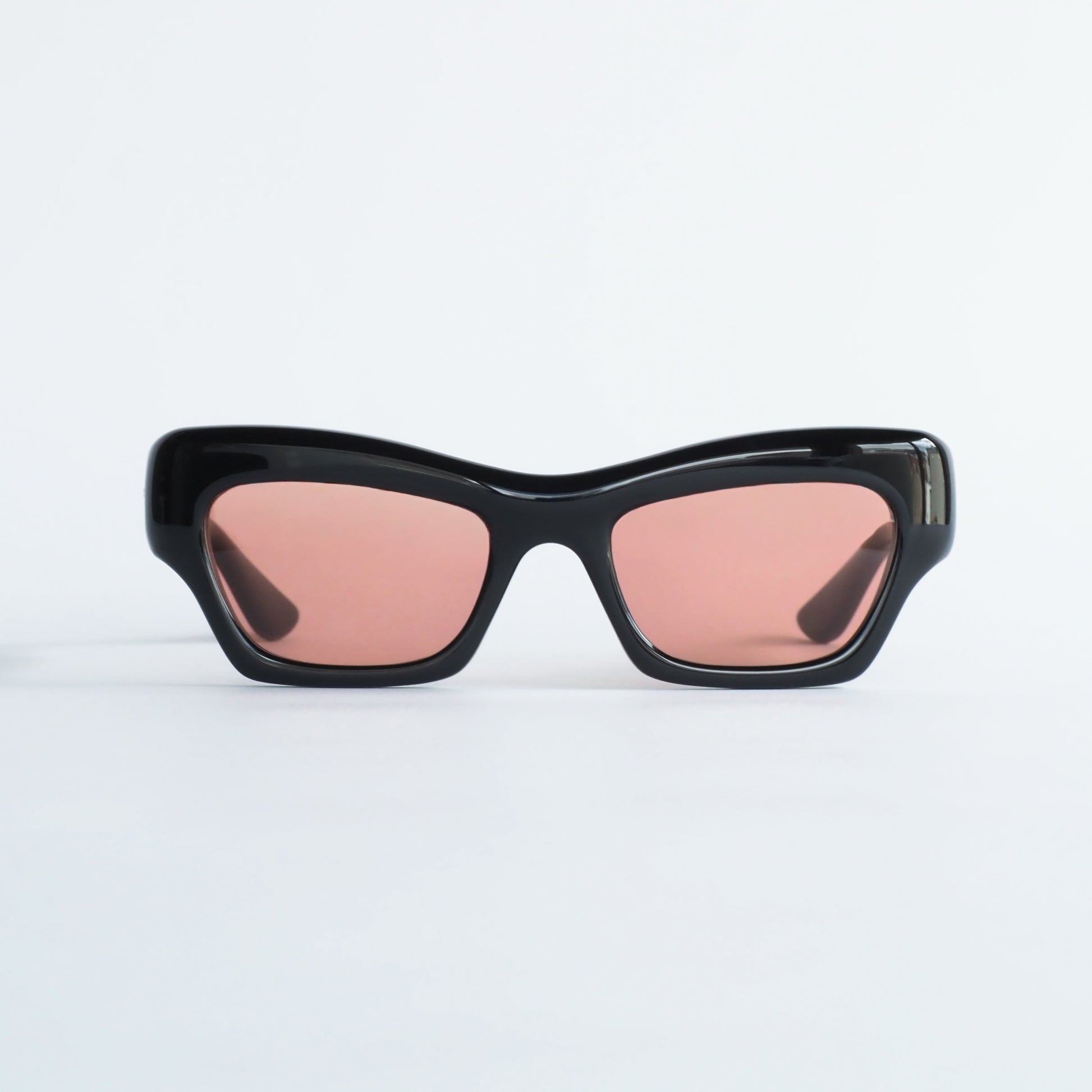 深みのあるブラックのアセテートフレームに、ほんのり赤味を帯びた “Wardi(ワルディ)” レンズを組み合わせた、ひと味違う存在感を放つ一本。