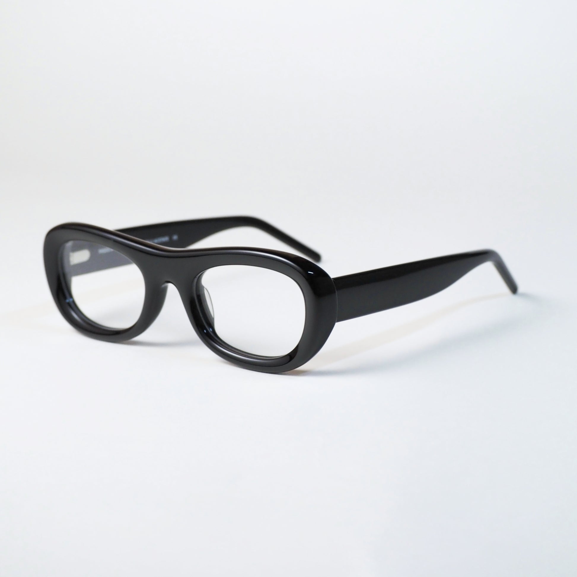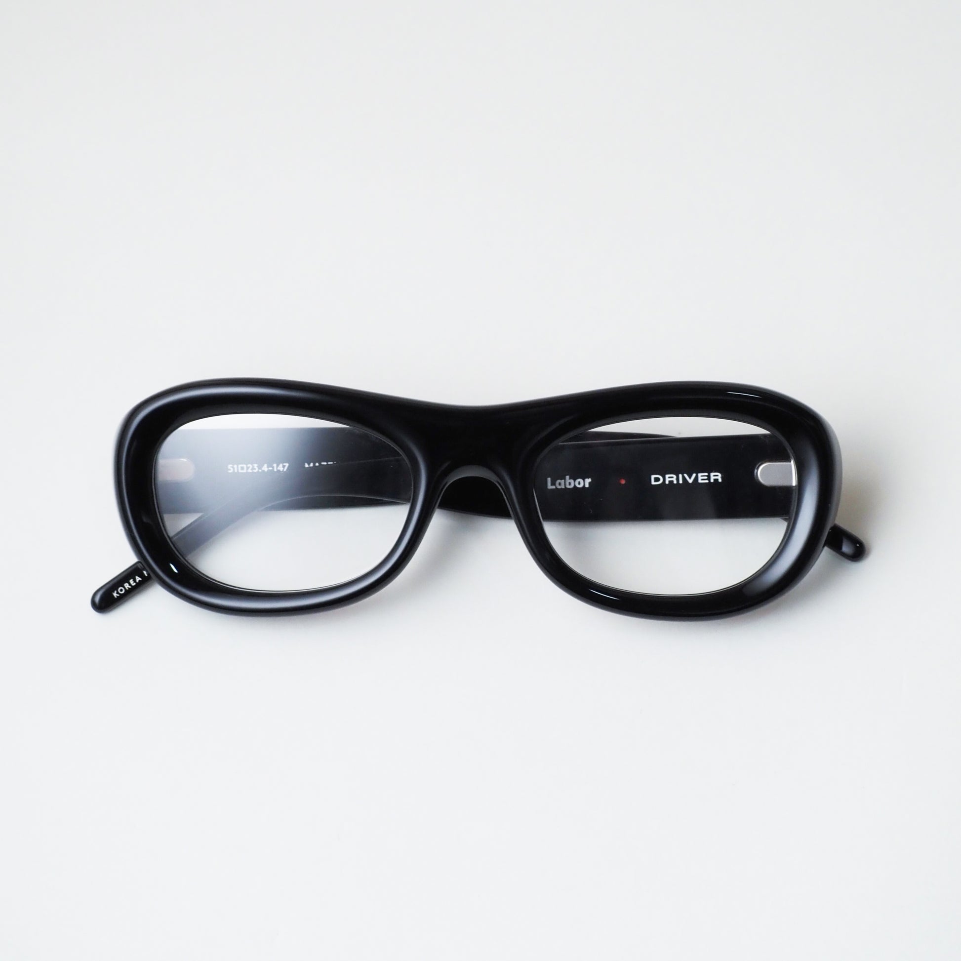 柔らかくカーブを描くオーバルシェイプが特徴で、顔に自然に馴染みながらも存在感を放つ一本です。シンプルなフォルムの中に、Laborらしい構築的なデザイン哲学が息づいています。