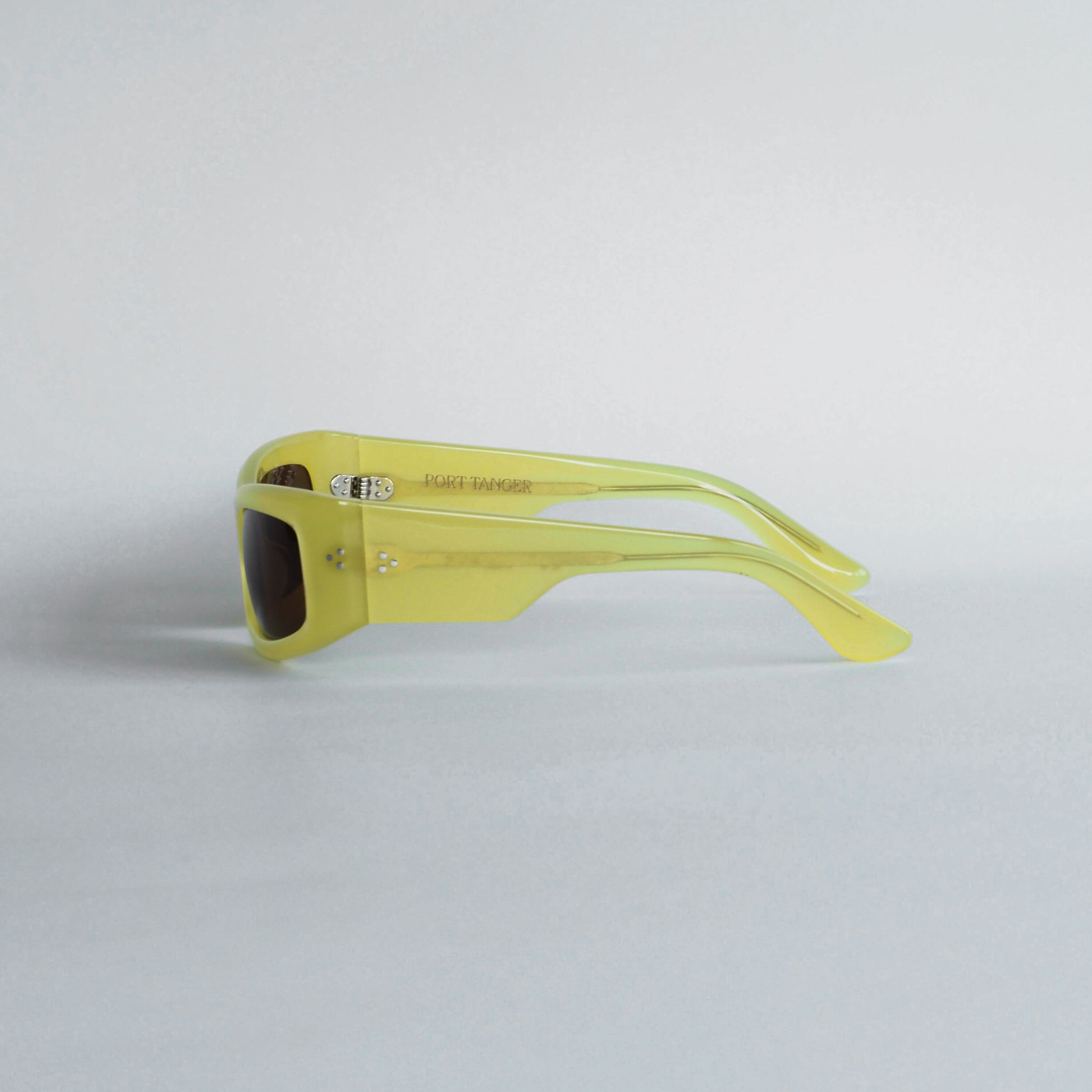 フロントにはレモンを思わせる鮮やかな Limon(リモン) カラーのセルロースアセテートを使用し、そこに組み合わせられた タバコ(Tobacco) カラーのレンズが、光の中で落ち着いた深みを演出します。