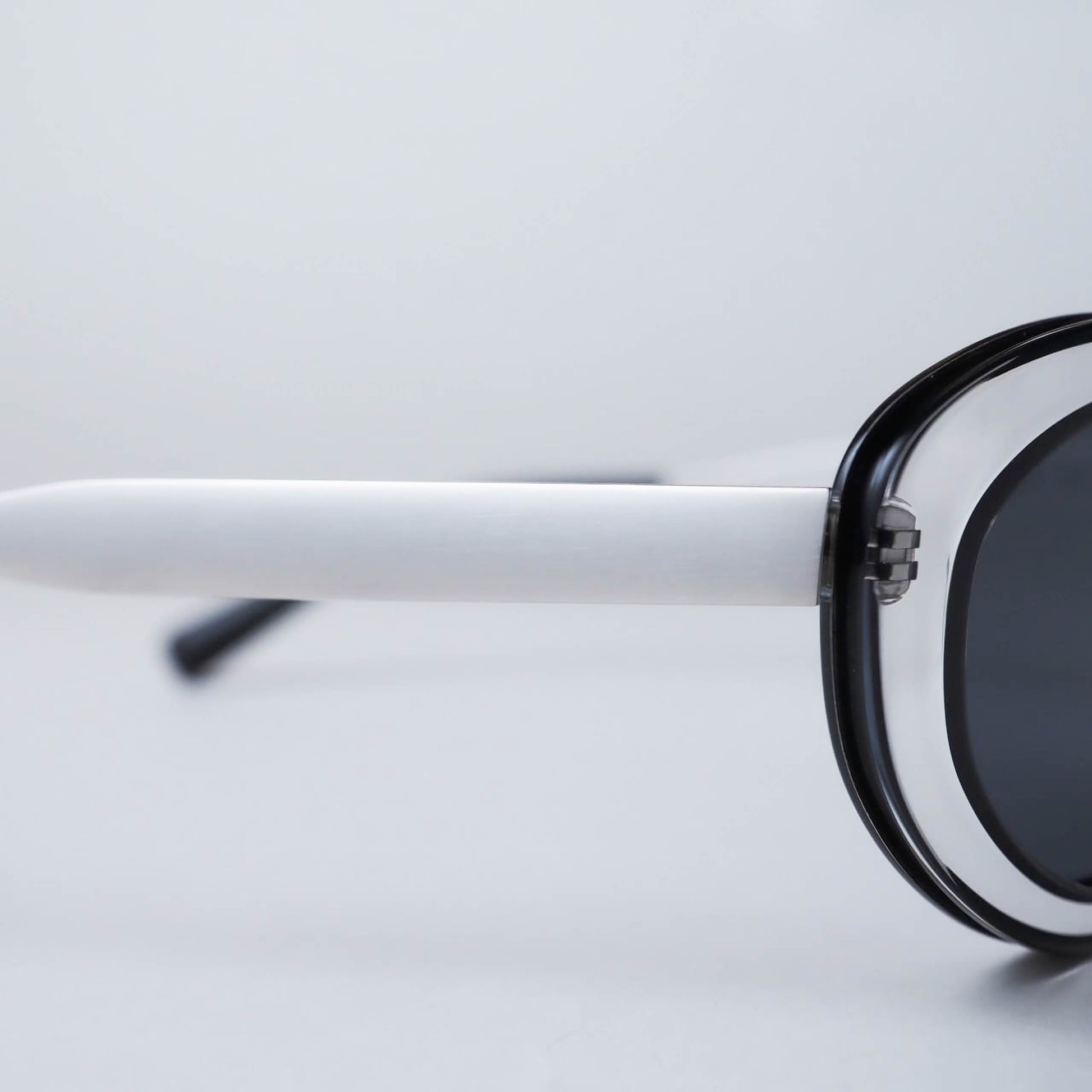 素材にはアセテートとチタンを組み合わせ、軽やかでありながらしっかりとした強度を確保。テンプルエンドまで美しいラインを描き、長時間の着用でも快適です。