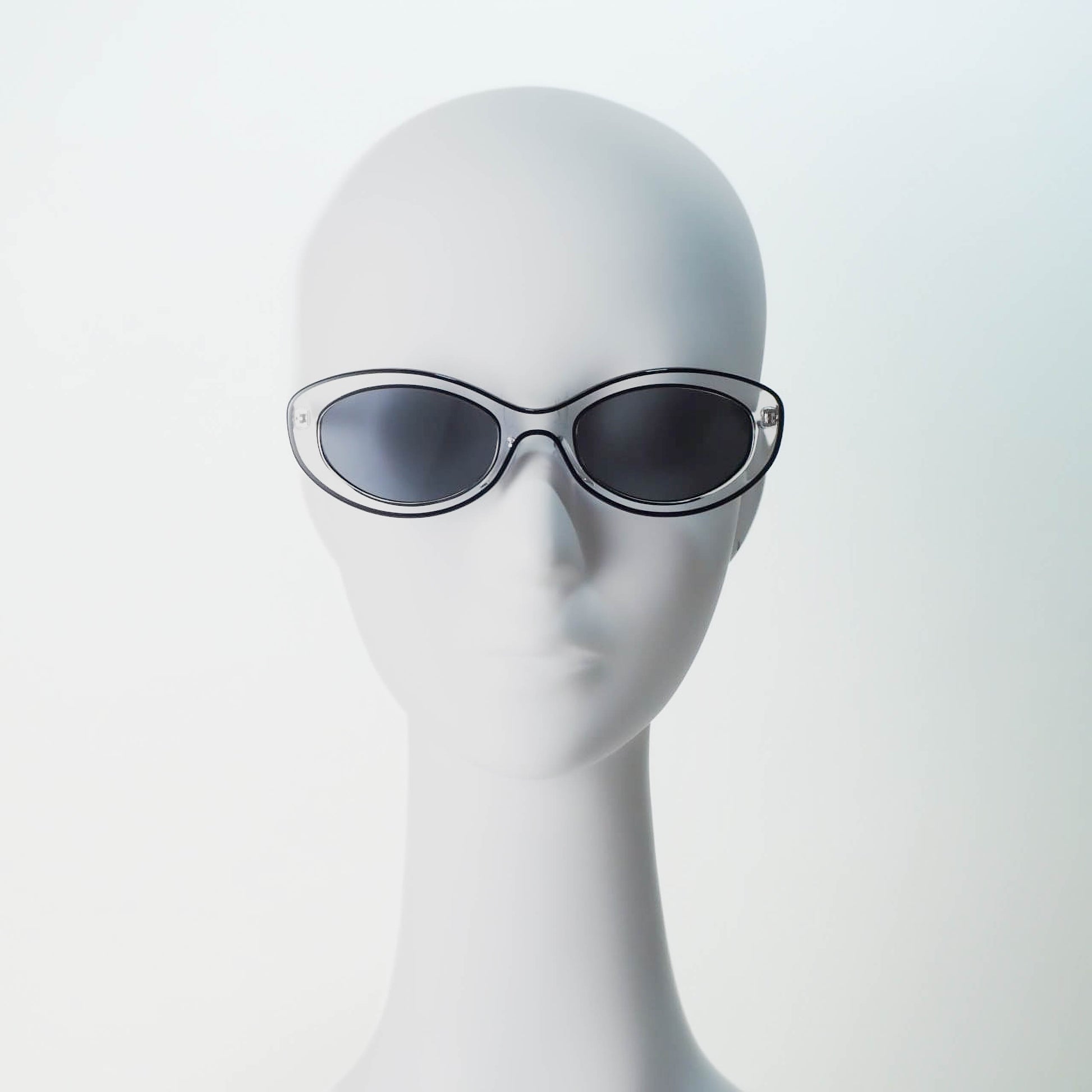 カラーはCRLBK-BK。クリアブラックのフロントに、ブラックの七宝を施した繊細な仕上げが特徴的なフレーム。