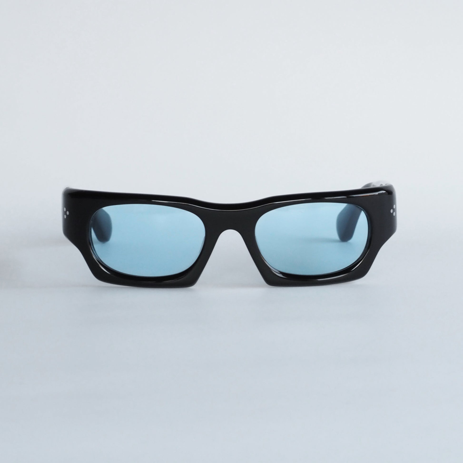 リフブルーのレンズは、見る角度や光の具合で青みを帯びたトーンがさりげなく映えるため、ブラックフレームの引き締め感を活かしつつ、硬質になりすぎず程良いニュアンスを添えてくれます。