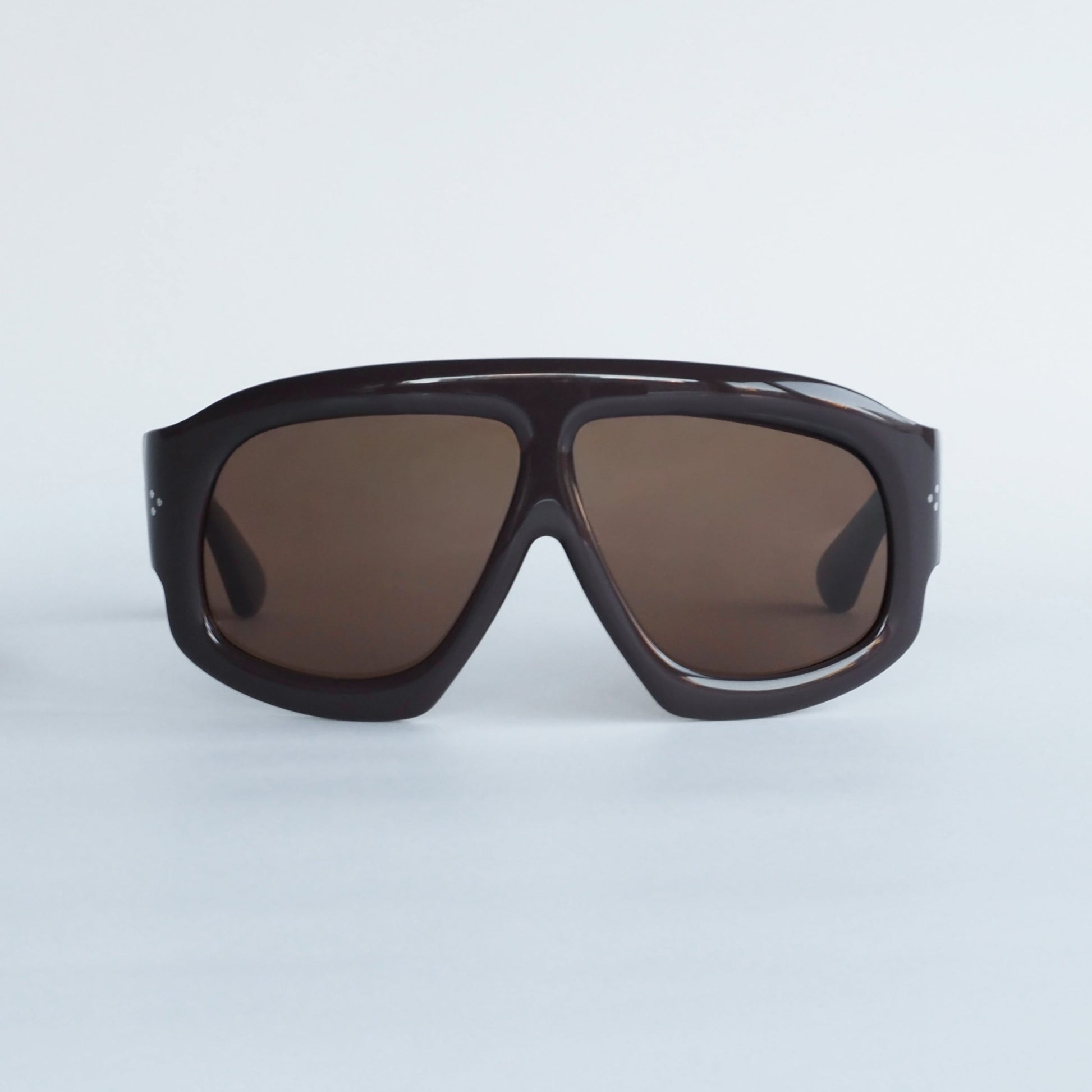 「Mari(マリ)」は、フライト/アビエーターを彷彿とさせるフォルムを、現代的な視点で再構築したモデル。フロントのブローラインが軽く抑えられながらも、レンズのシルエットにはインパクトのあるワイドなレンズが採用されており、圧倒的な存在感を放っているデザインです。