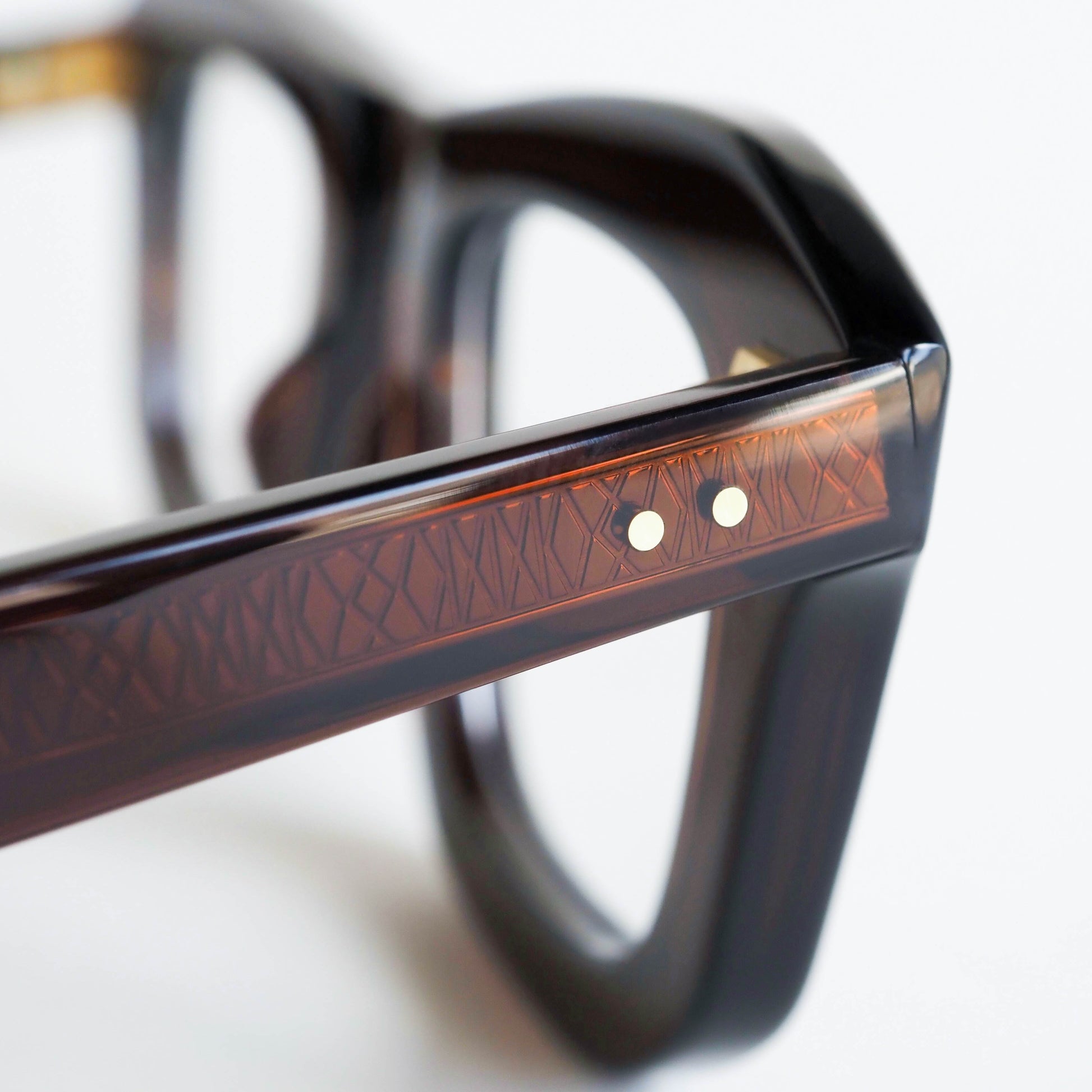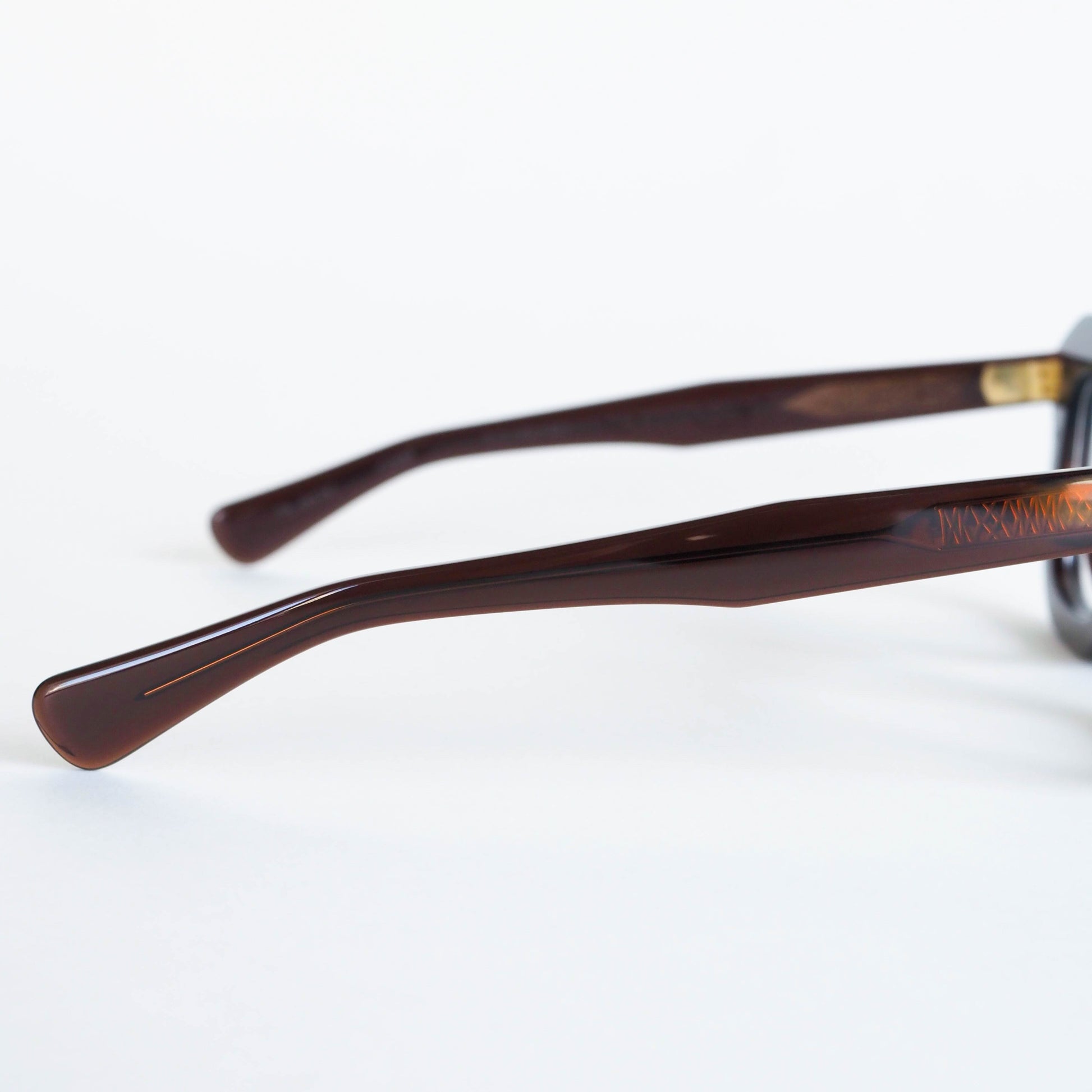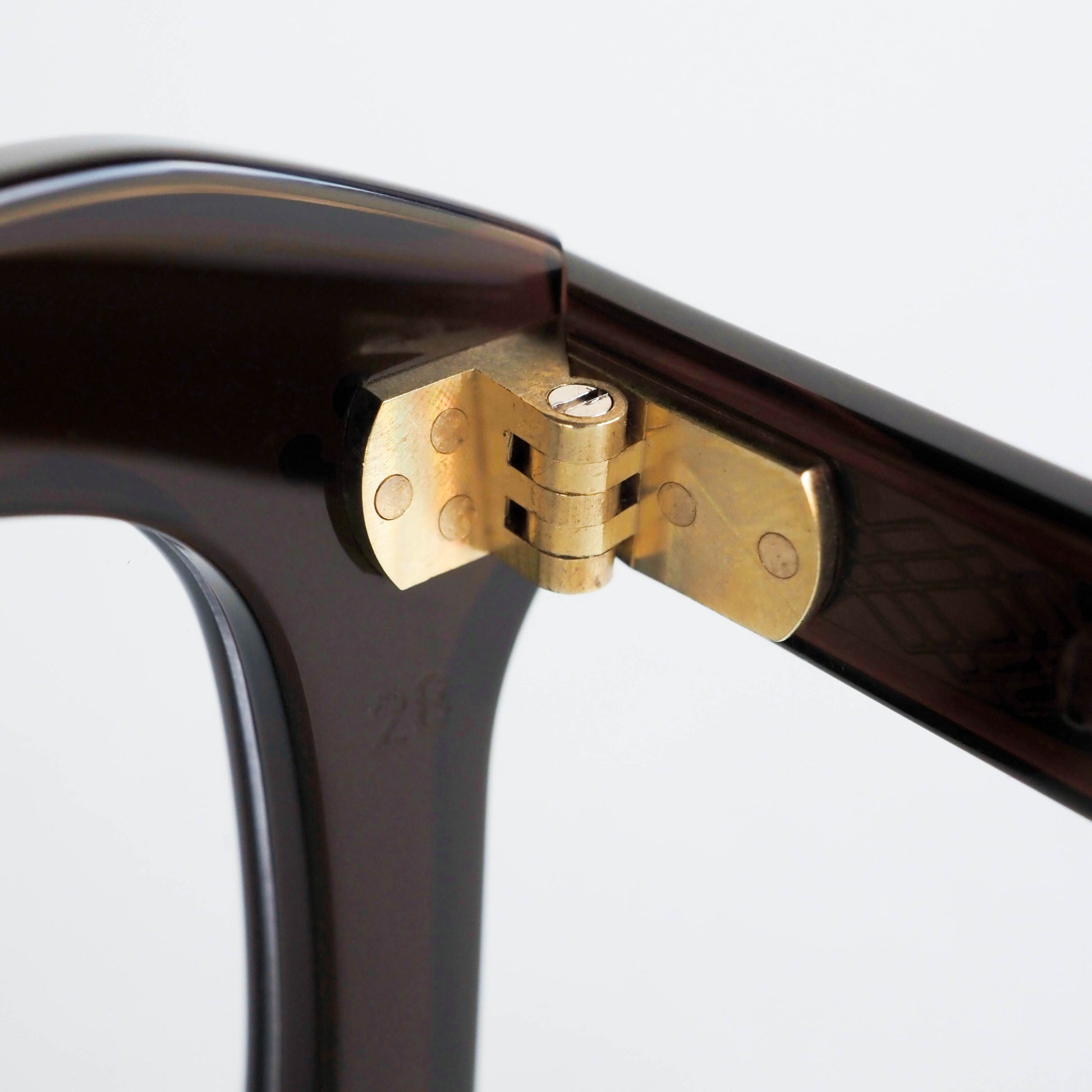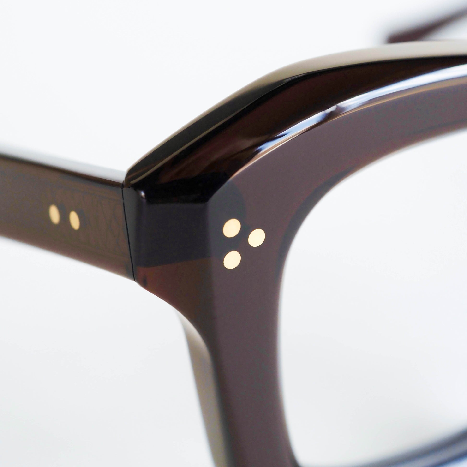 蝶番には、ヴィンテージアイウェアにも多く用いられてきた真鍮素材を採用。使い込むほどに深みを増す経年変化も、このモデルならではの楽しみのひとつです。