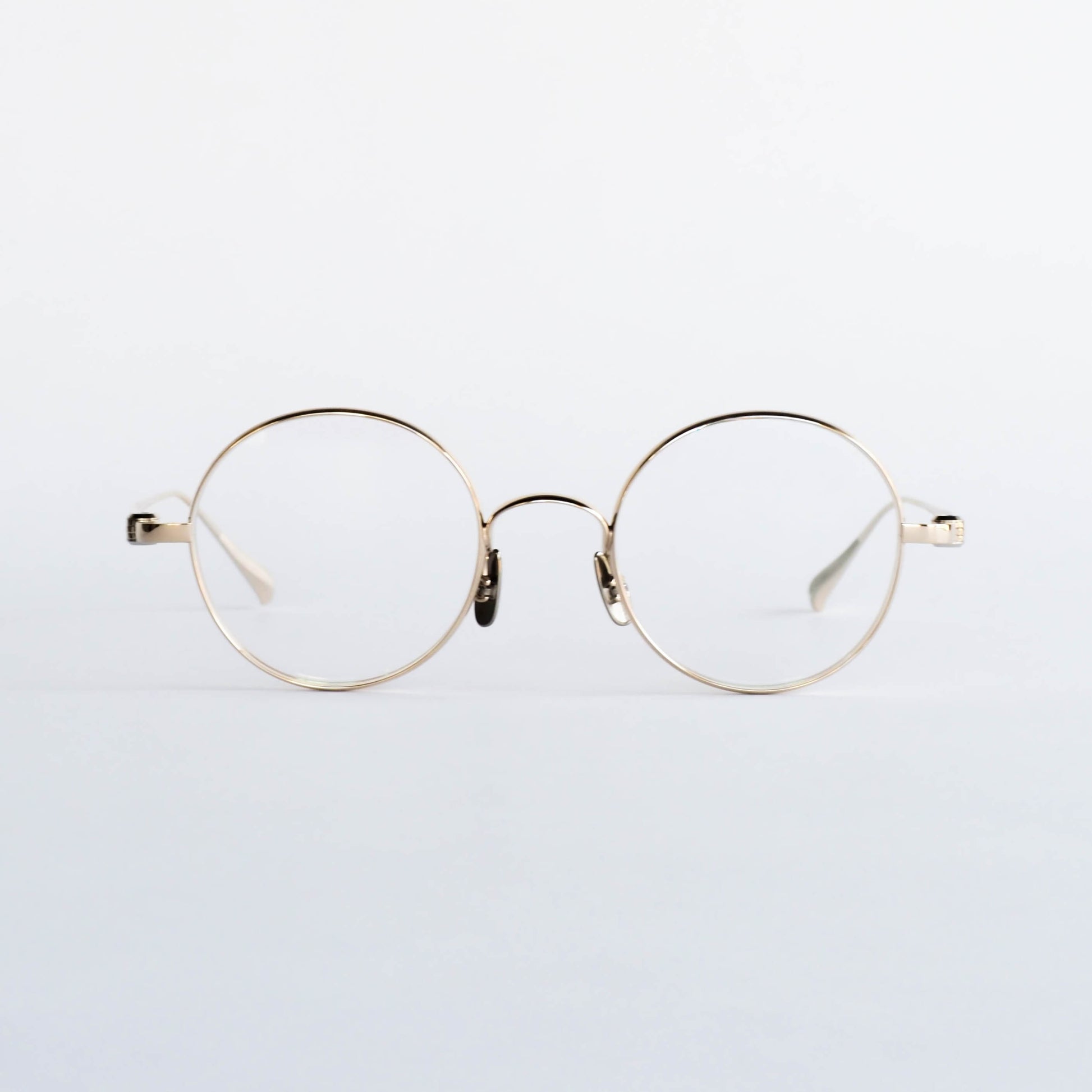 クラシックなラウンドシェイプを、上品なホワイトゴールドで仕上げたcol.01。柔らかく穏やかな光沢が特徴で、主張しすぎることなく顔立ちに自然な明るさを添えてくれます。華やかさを持ちながらも、落ち着いた印象にまとまるカラーリングです。