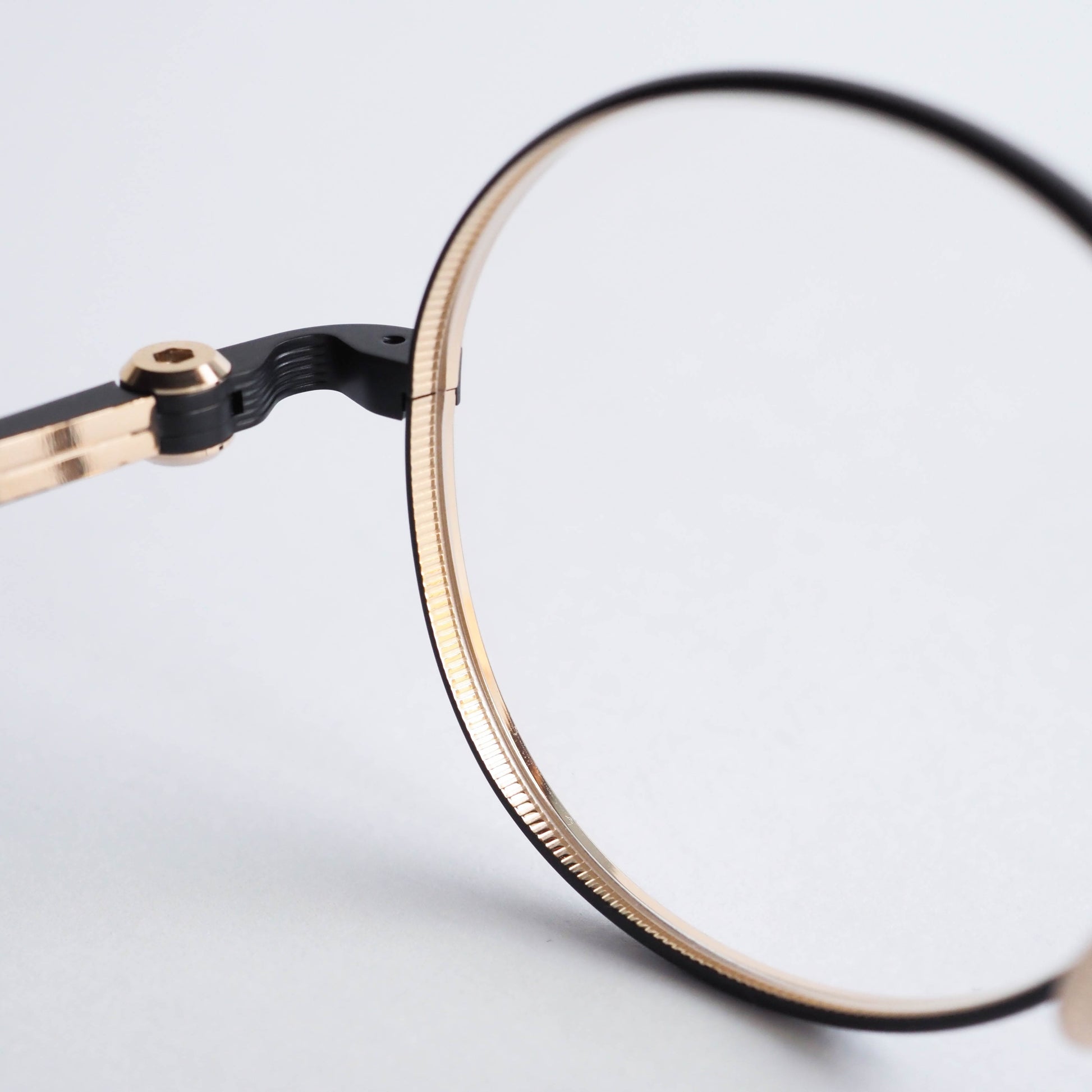 繊細なラウンドメタルを探している方はもちろん、黒縁の落ち着きとゴールドの華やかさをさりげなく取り入れたい方にもおすすめしたい一本。装いに自然な品格を加えてくれるモデルです。