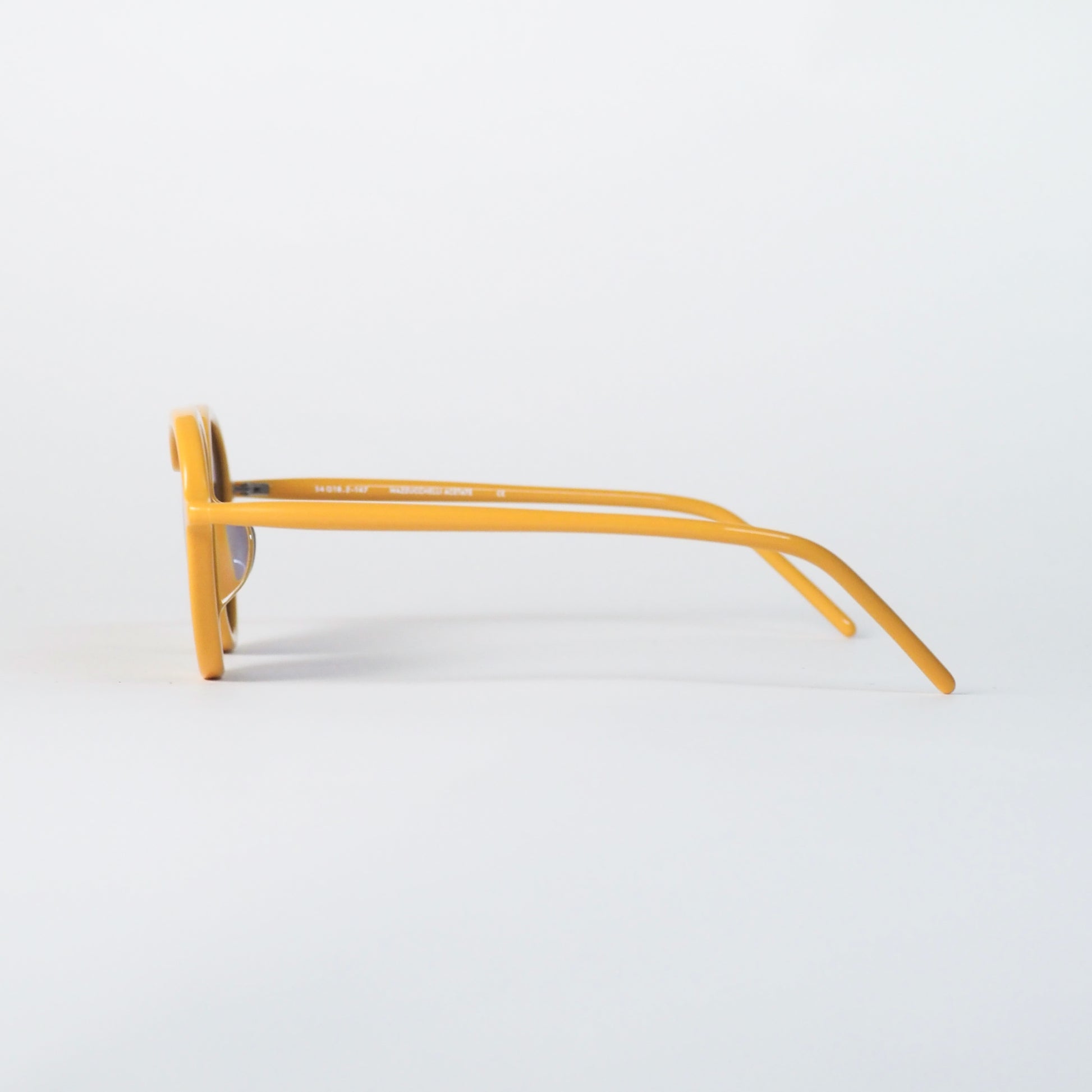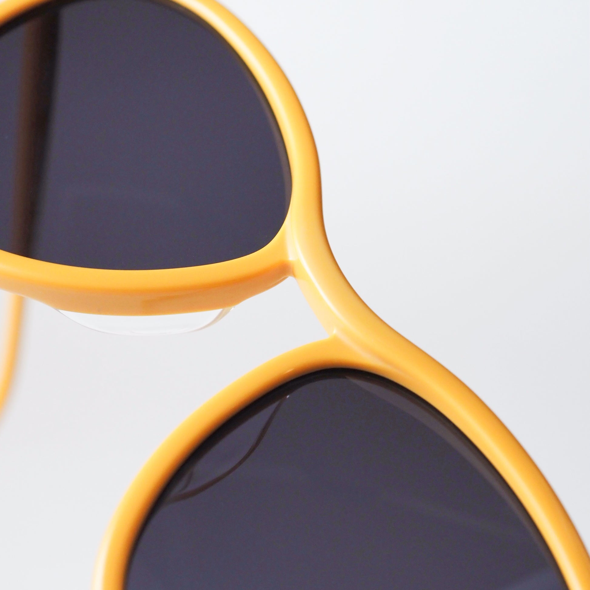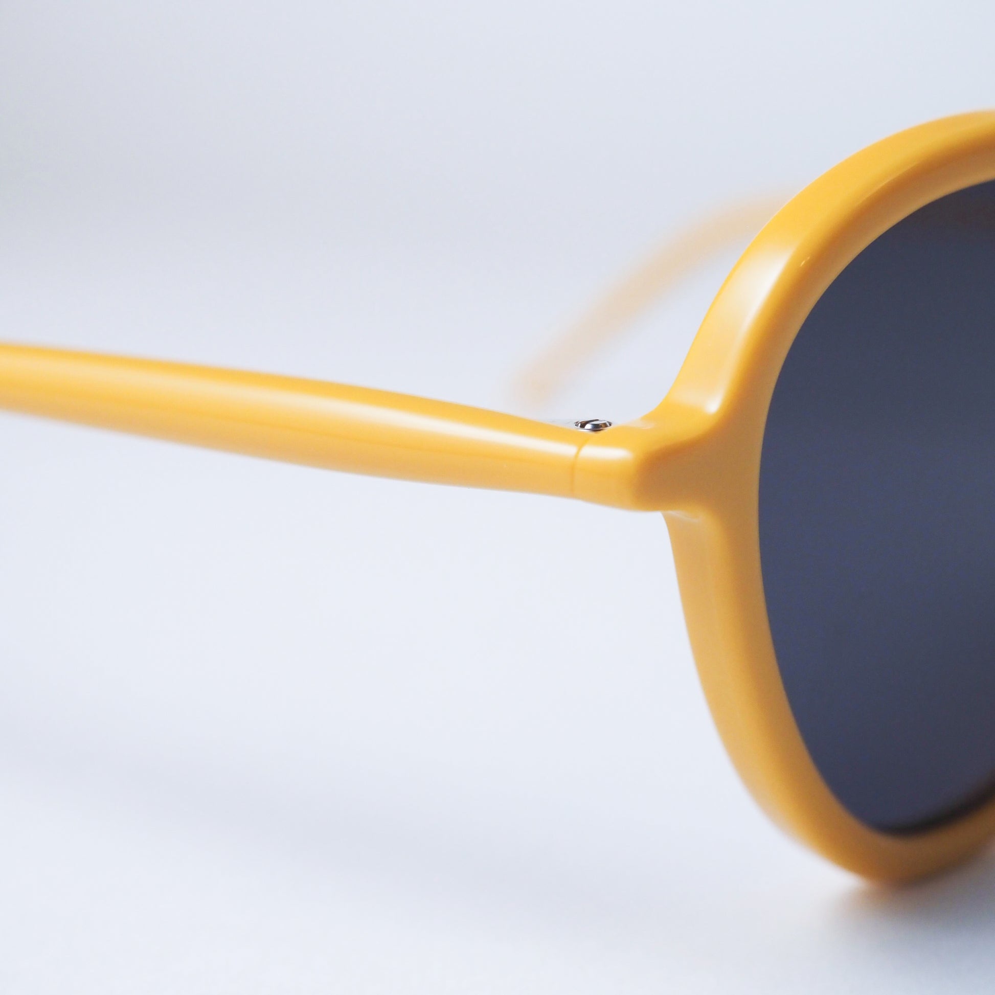 カラーリングは、深みのあるグレーレンズに鮮やかなイエローを重ねた二色構成。光の加減によって異なる印象を生み、角度を変えるたびに立体的な陰影が浮かび上がります。クラシカルでありながらも軽やかさを感じる絶妙な色調です。