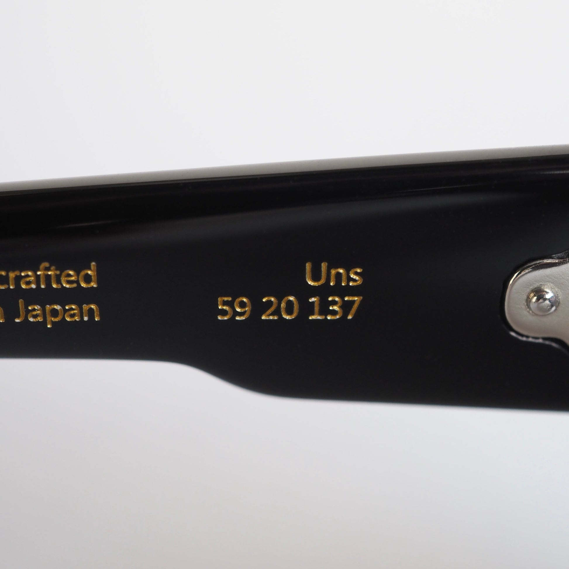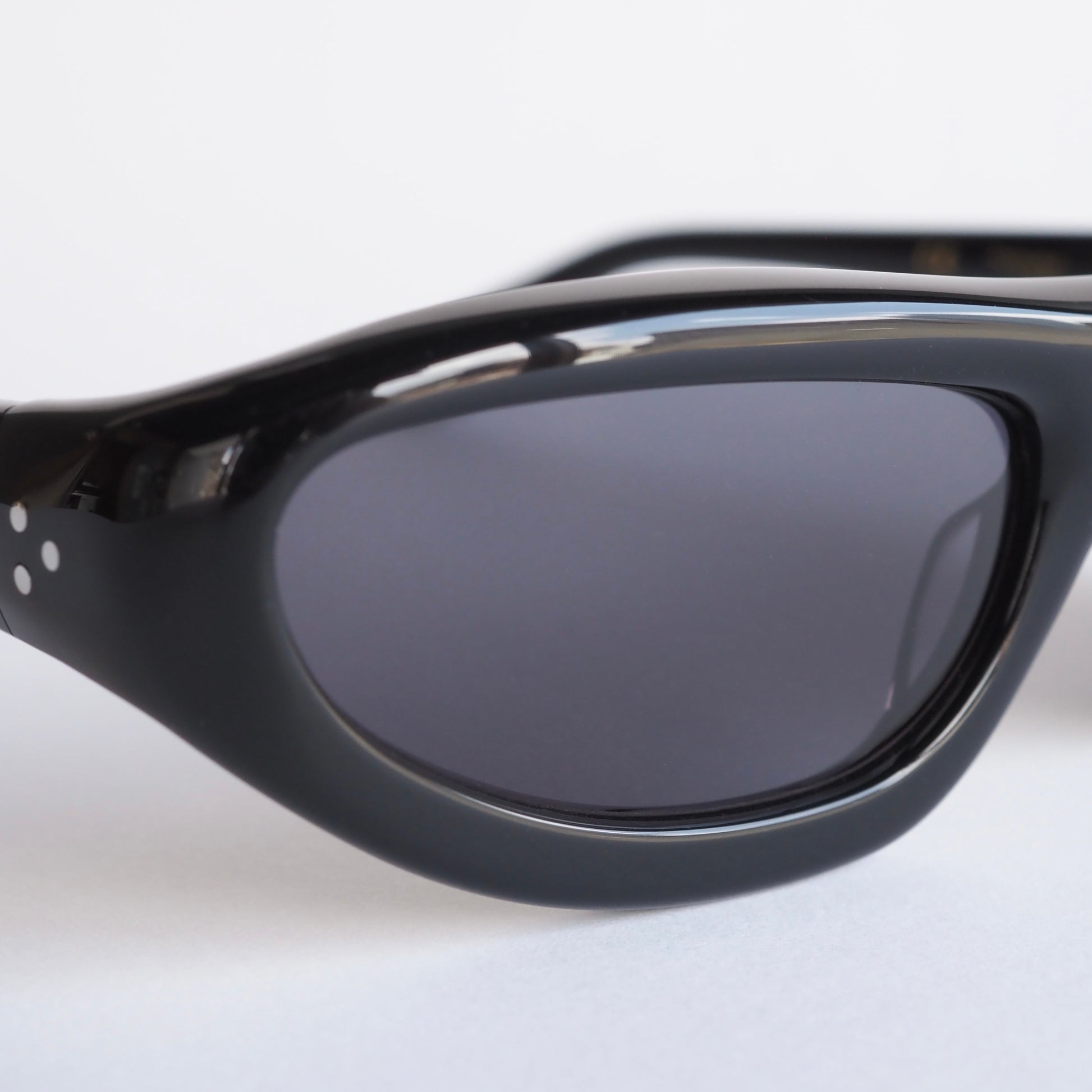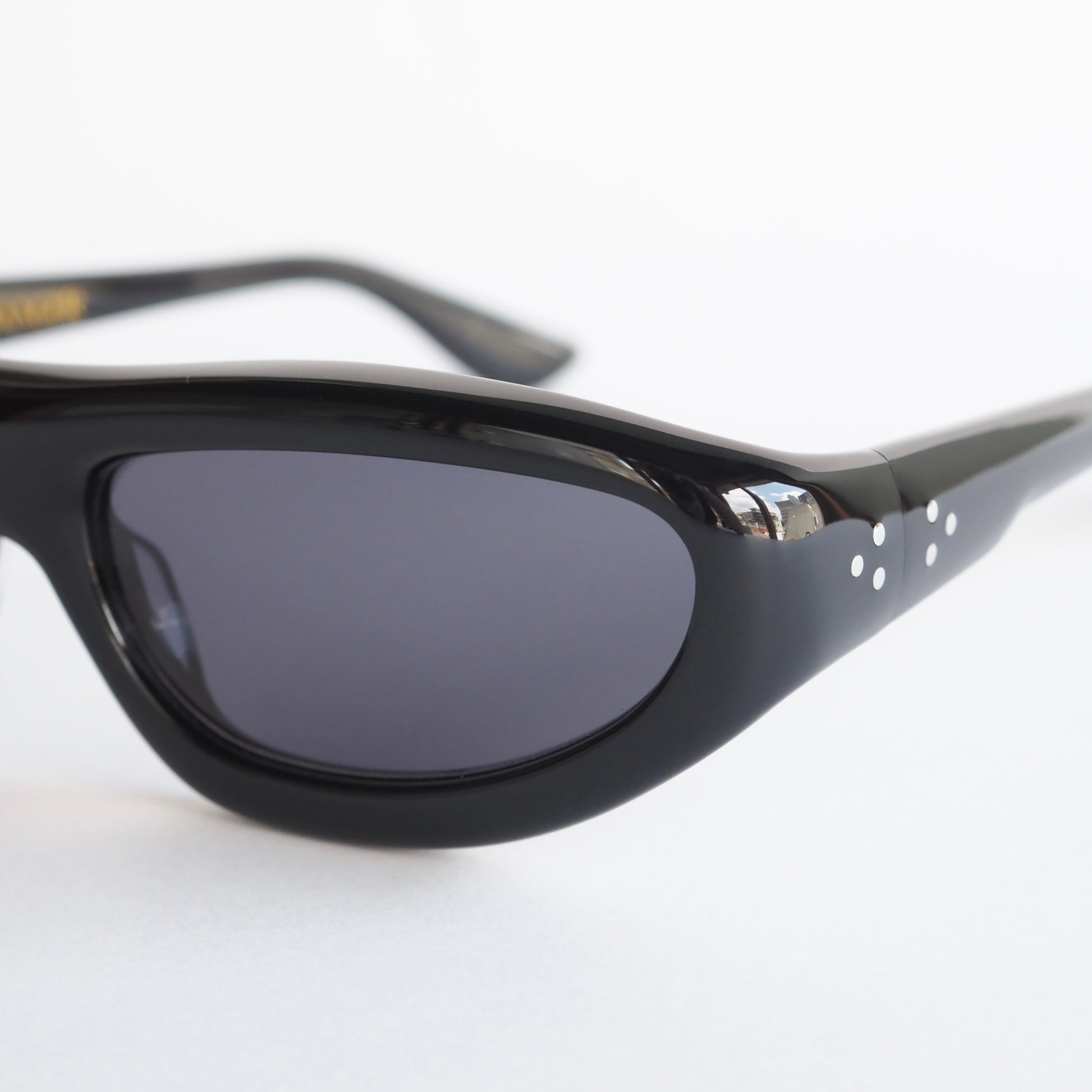 テンプルに配された6つのドットリベットが、ミニマルな中に遊び心を添えています。