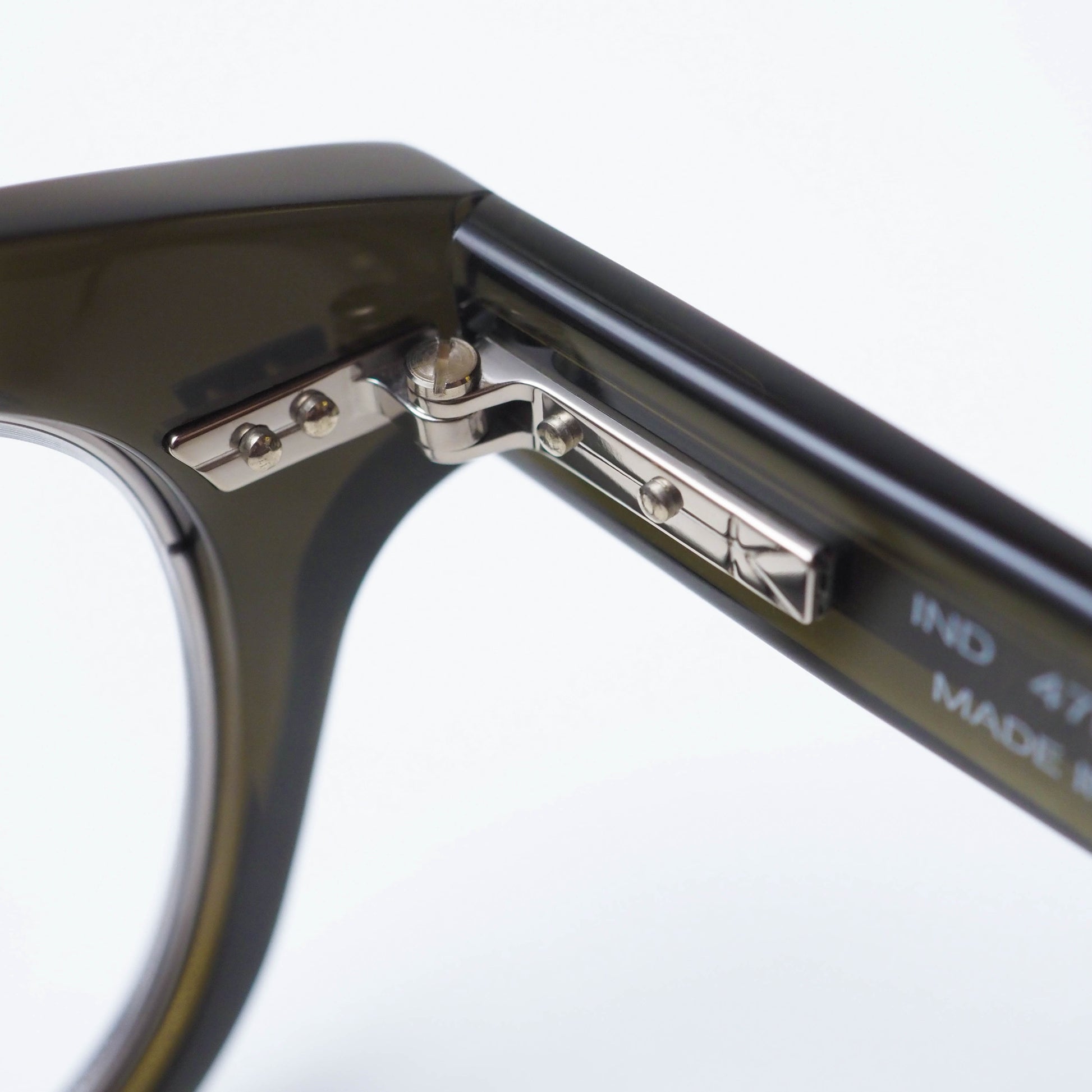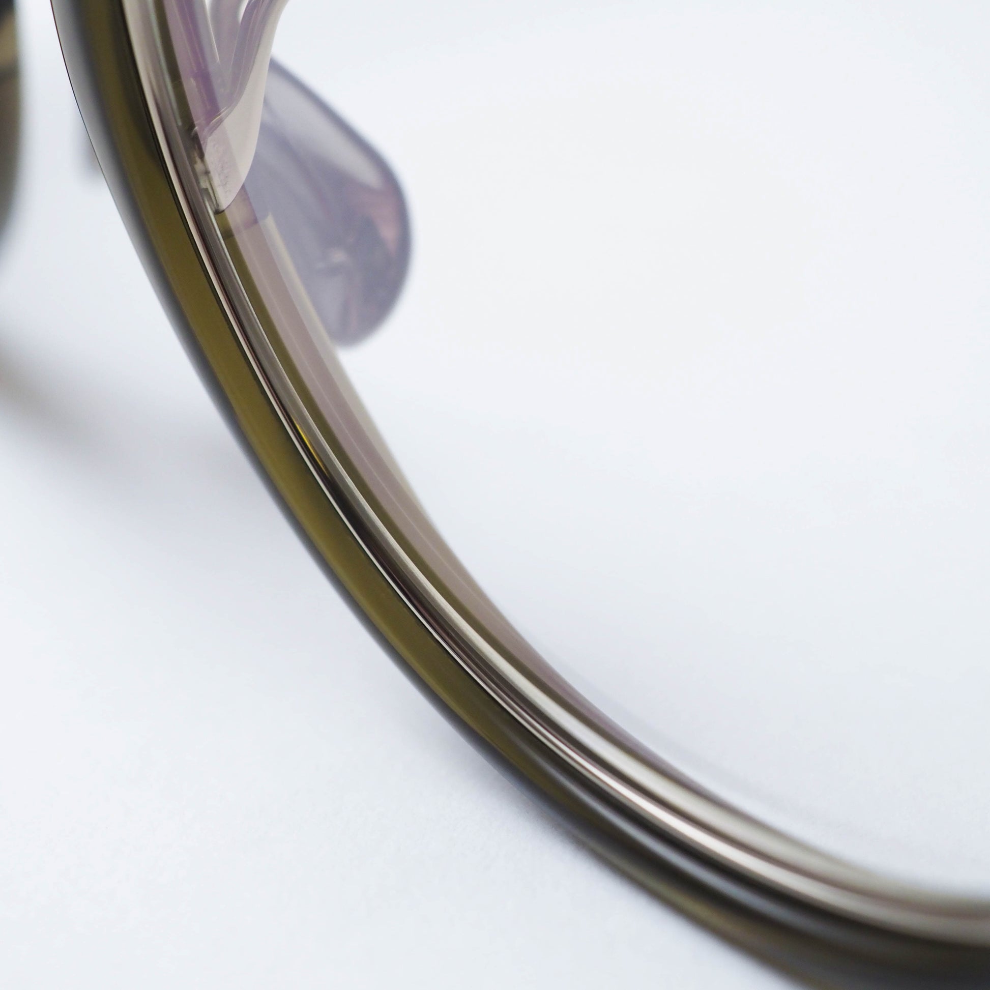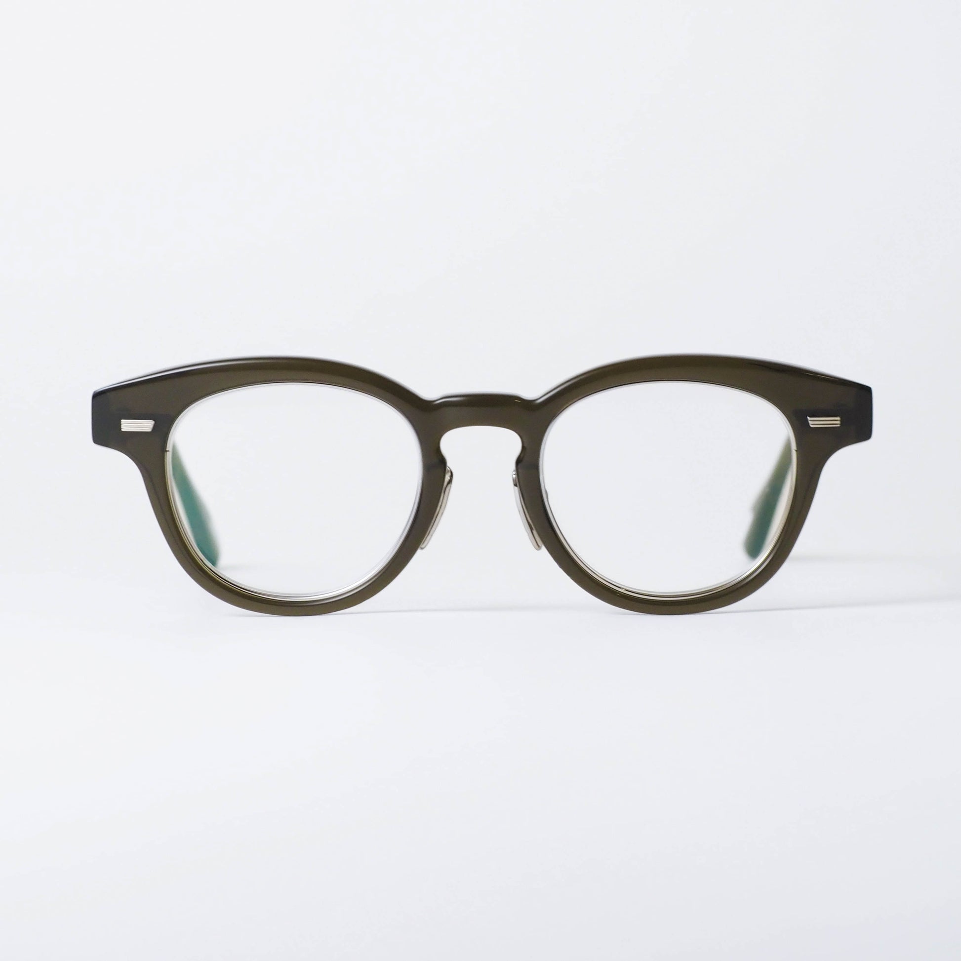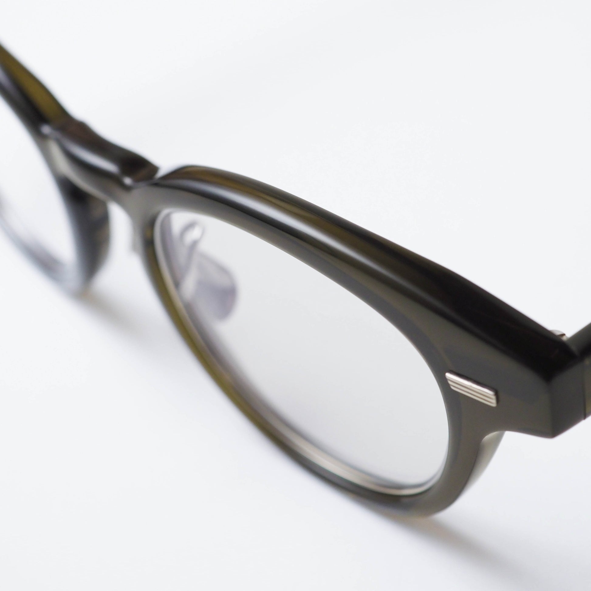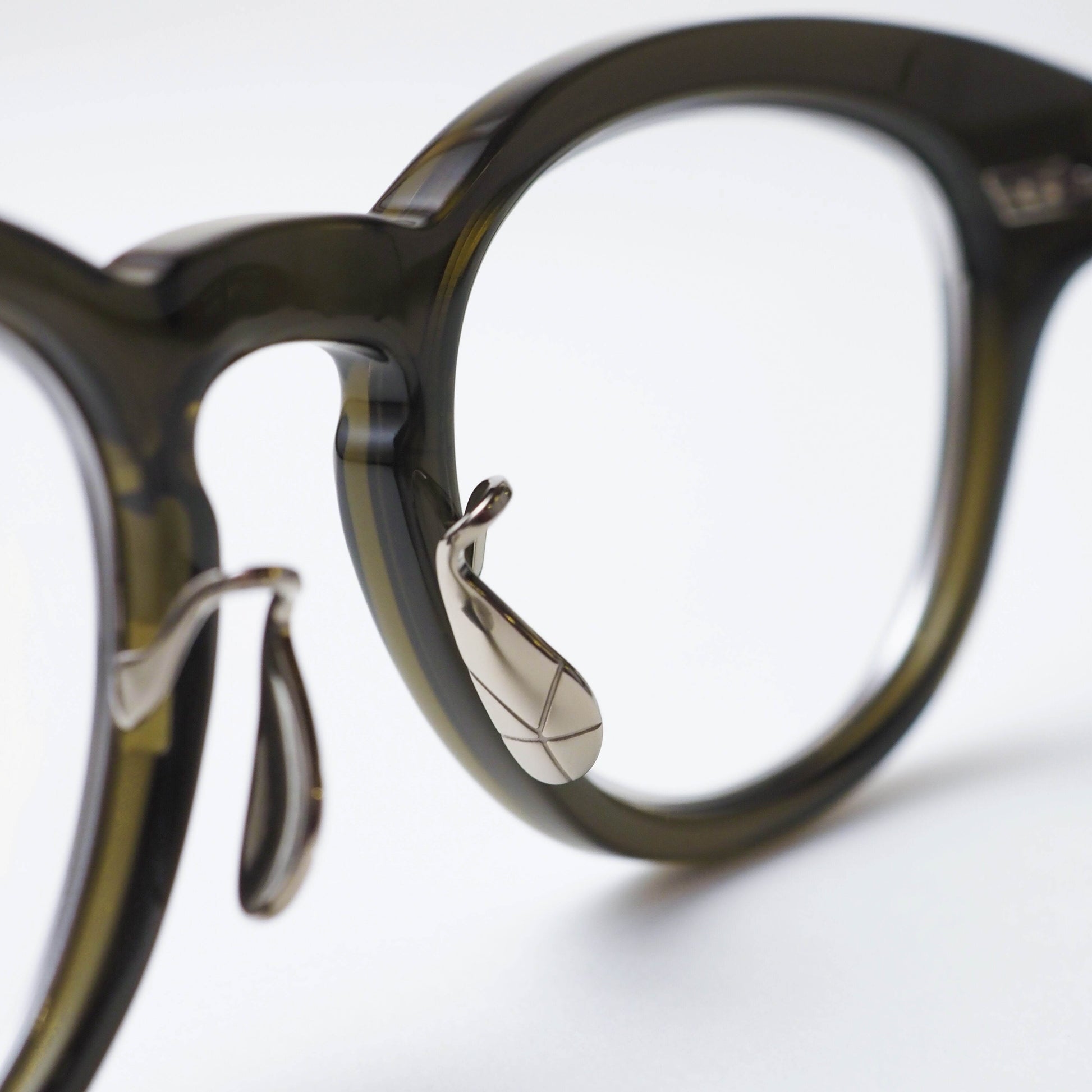 フロント内側にはインナーメタルを配し、セル素材の柔らかさの中にさりげない緊張感を加えることで、上品で洗練された表情に仕上げられています。