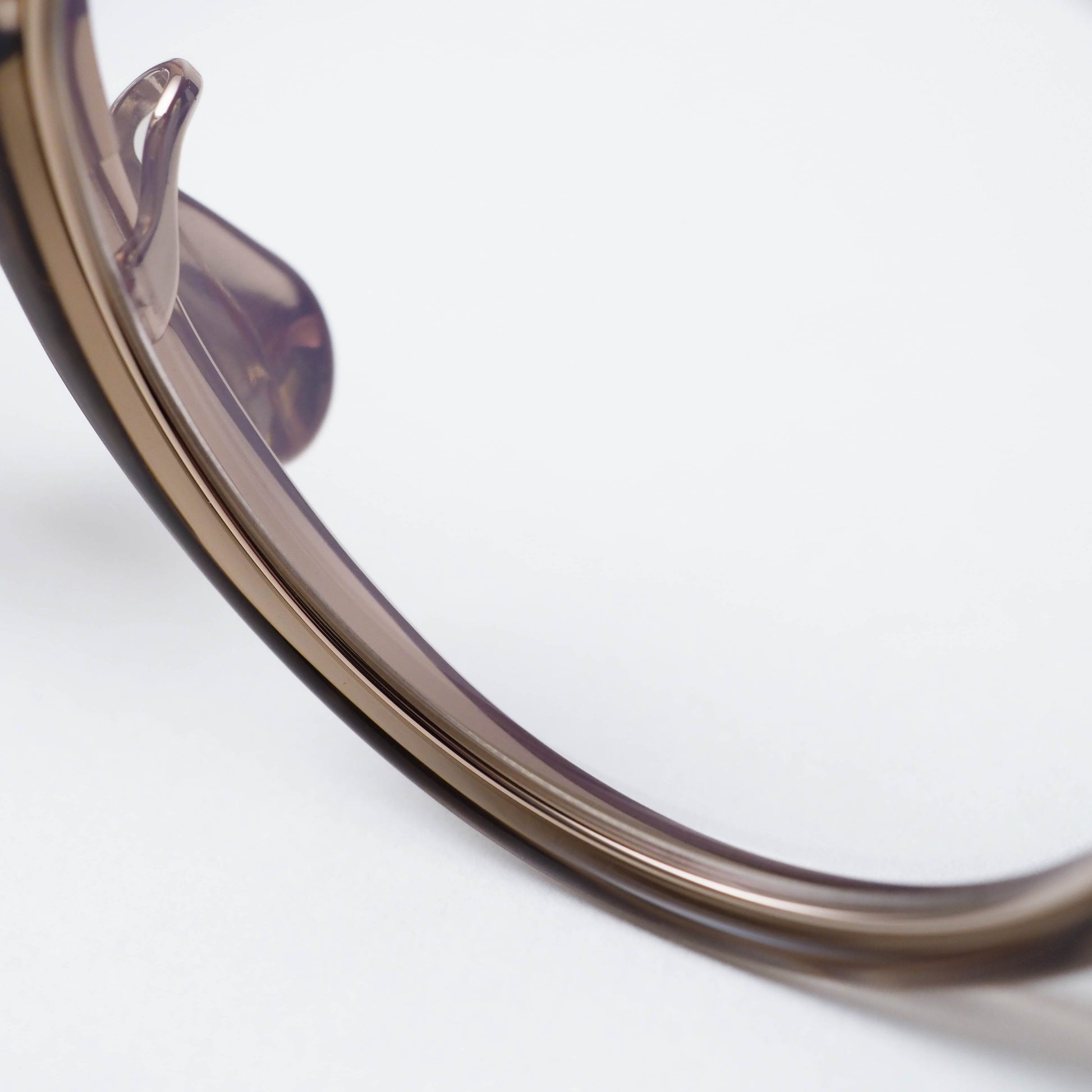 フロント内側にはインナーメタルを配し、セル素材の柔らかさの中にさりげない緊張感を加えることで、上品で洗練された表情に仕上げられています。