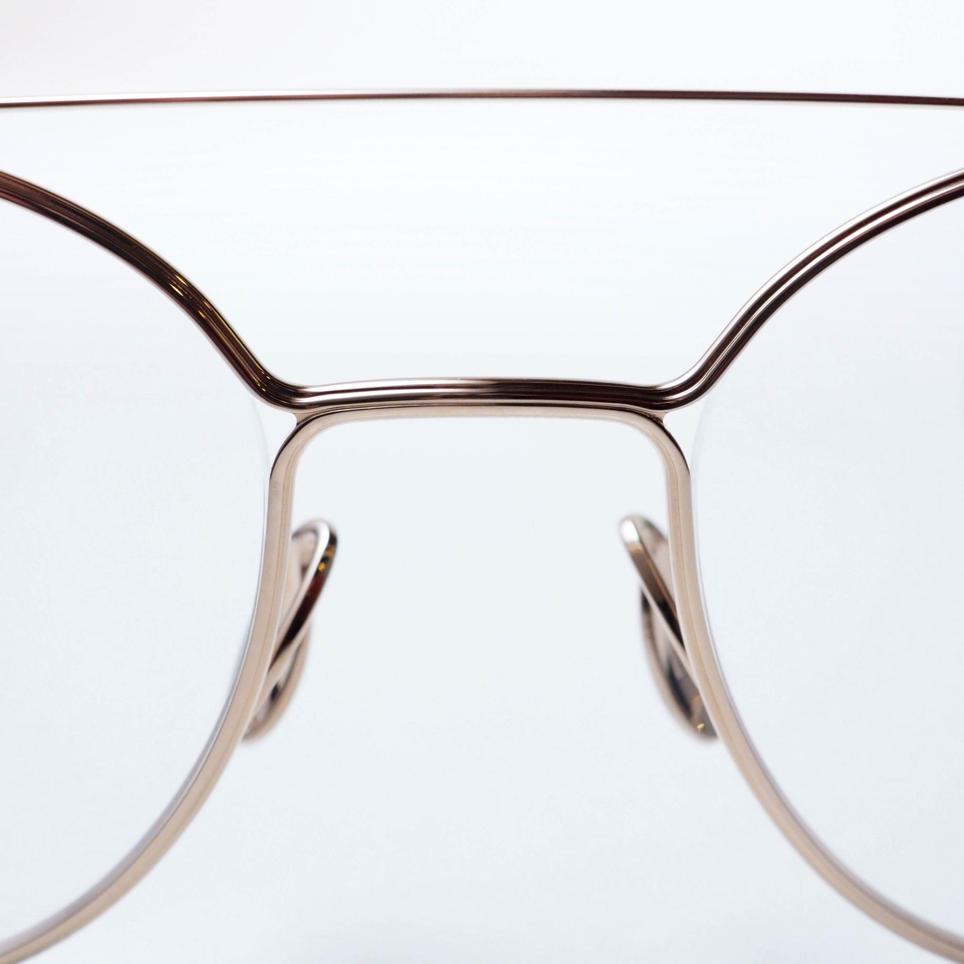 本モデルは、ブリッジやリムの設計に工夫を凝らすダブルダッチの設計思想と、金属を“つまむ(pinch)”ように成形することで線に表情を与えるピンチのアプローチ、それぞれを整理し、一つの造形としてまとめ上げたハイブリッドデザイン。