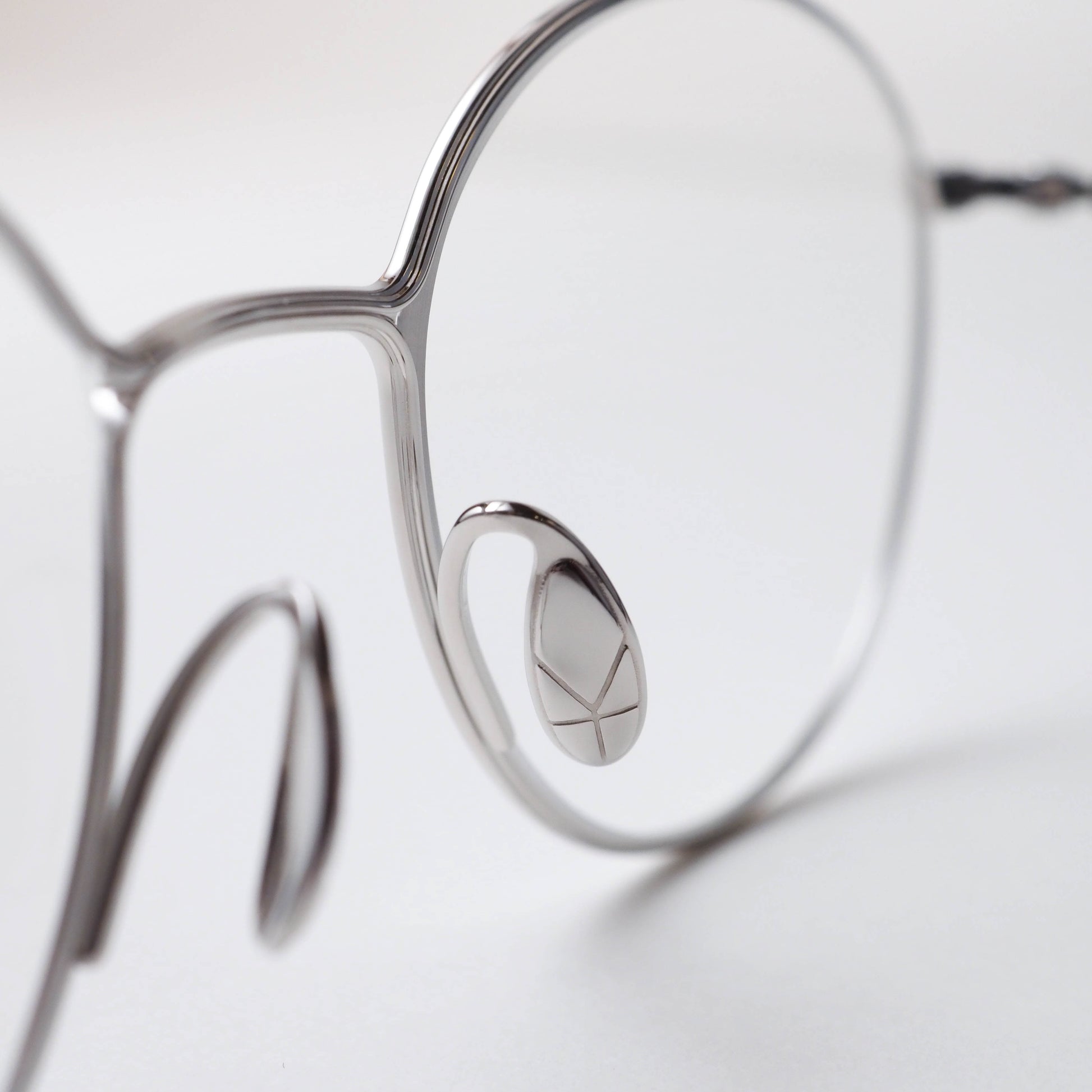 本モデルは、ブリッジやリムの設計に工夫を凝らすダブルダッチの設計思想と、金属を“つまむ(pinch)”ように成形することで線に表情を与えるピンチのアプローチ、それぞれを整理し、一つの造形としてまとめ上げたハイブリッドデザイン。