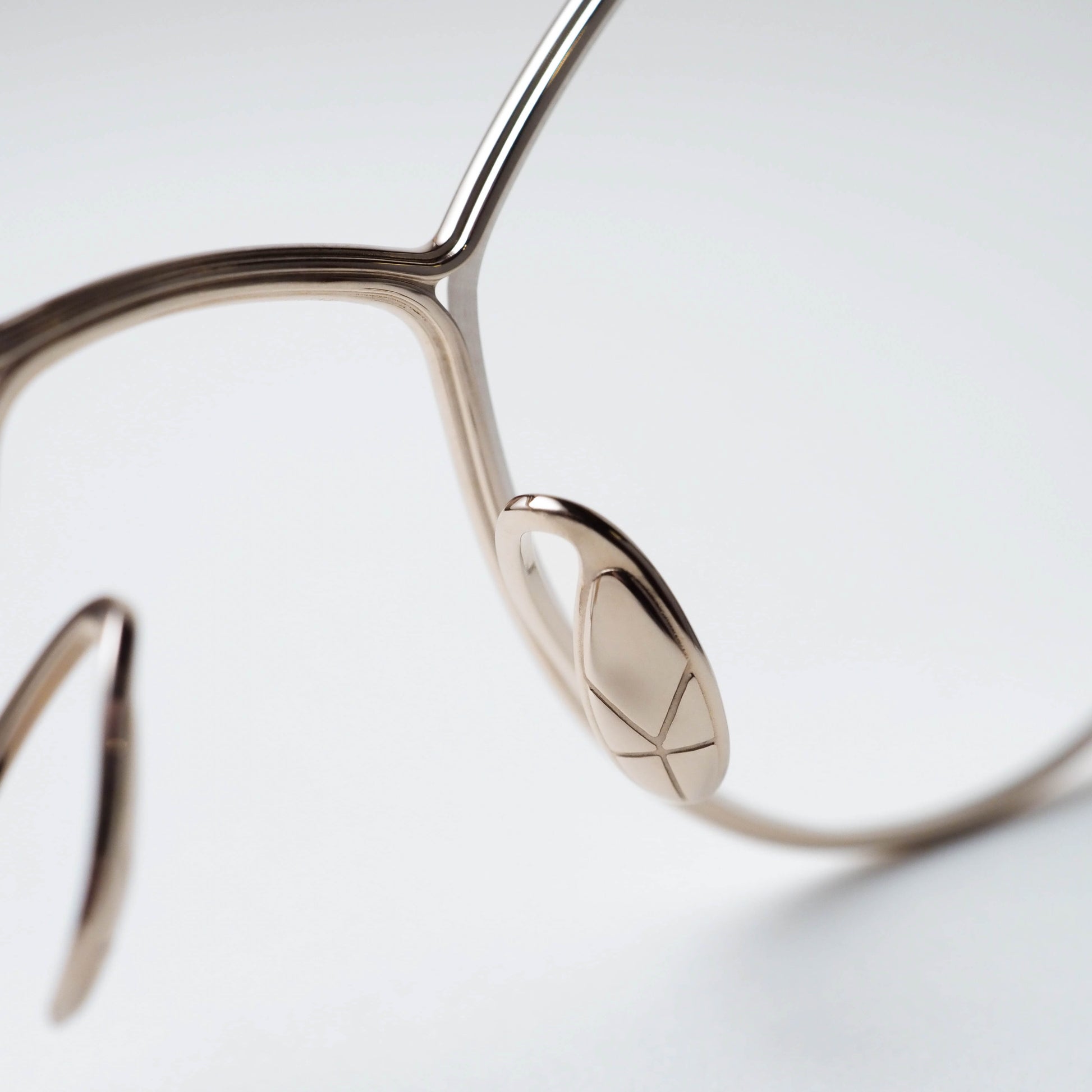 構造を前面に押し出すのではなく、触れたときに初めて気づくような造形的な抑揚が随所に施されており、メタルフレームならではのシャープさの中に、静かな個性が宿っています。