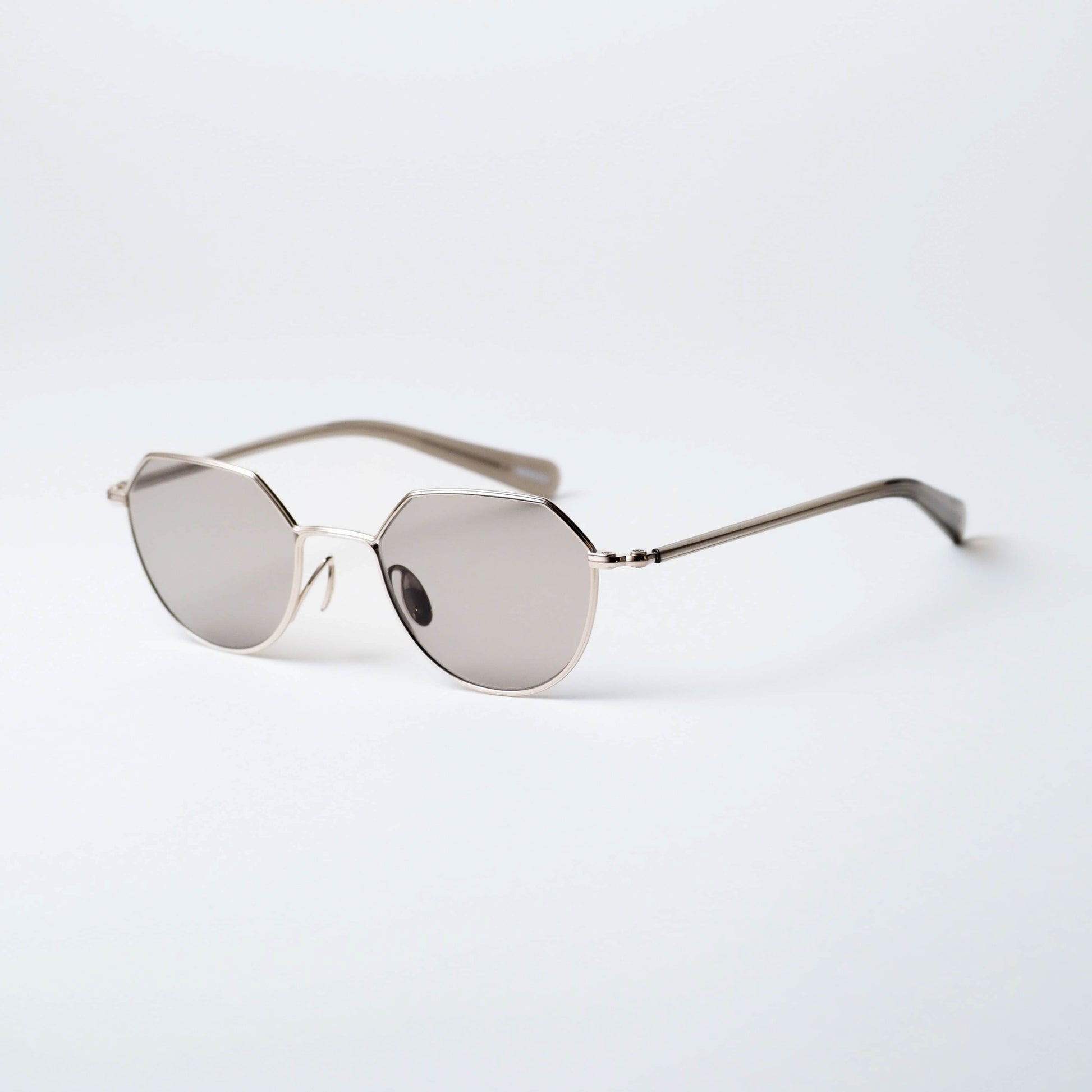 構造を前面に押し出すのではなく、触れたときに初めて気づくような造形的な抑揚が随所に施されており、メタルフレームならではのシャープさの中に、静かな個性が宿っています。