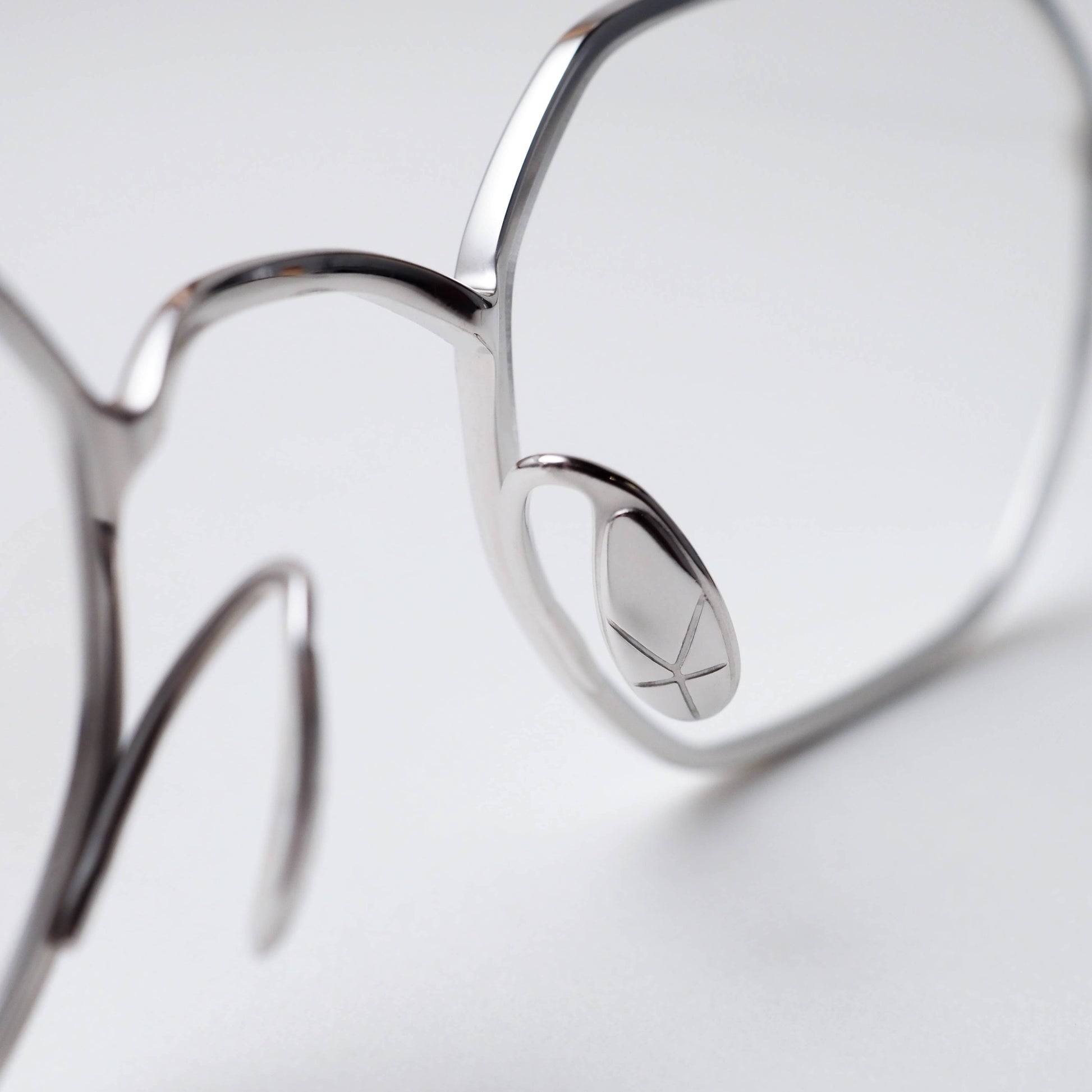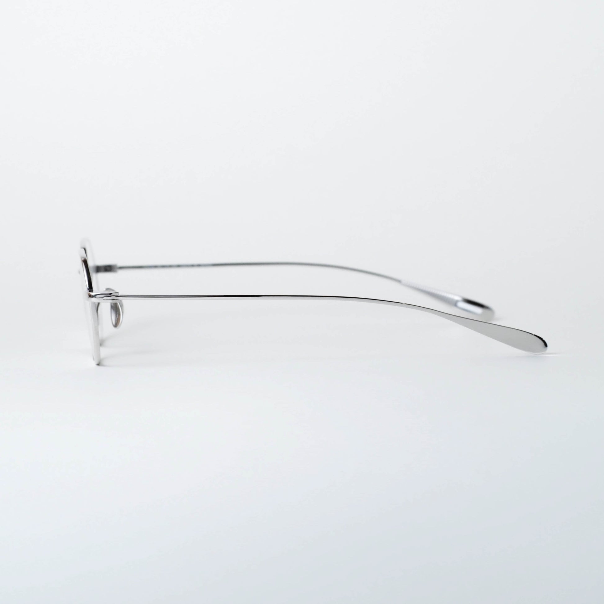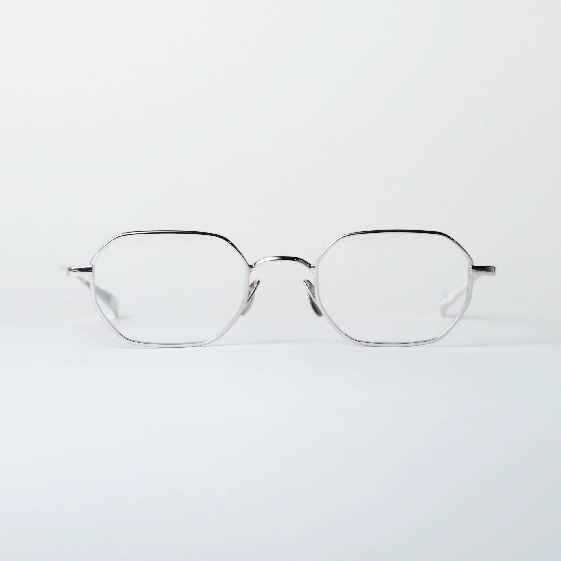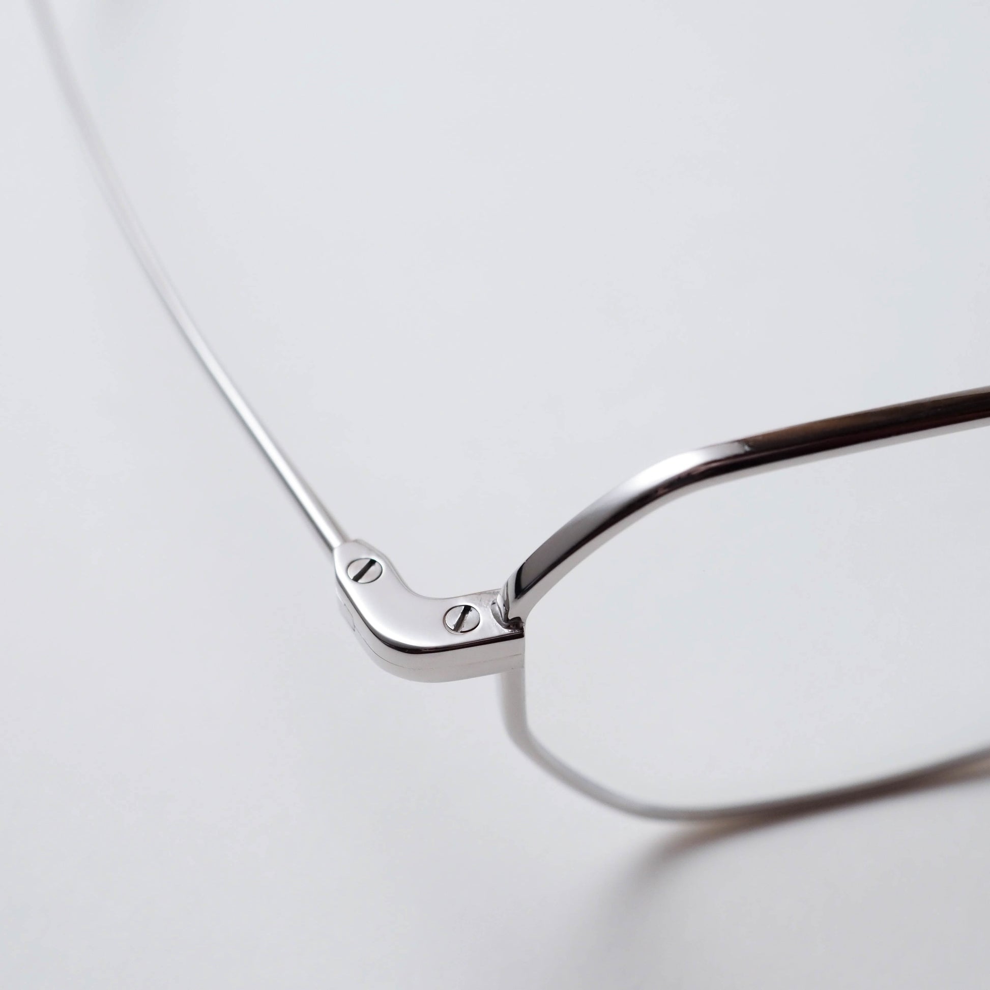 現在のアイウェアトレンドとして注目されるスクエアシェイプをベースに、メタルフレーム特有のシャープさを備えつつ、線の太さや角度に微細な調整を施すことで、掛けた際には硬さを感じさせない、穏やかな表情に仕上げられています。