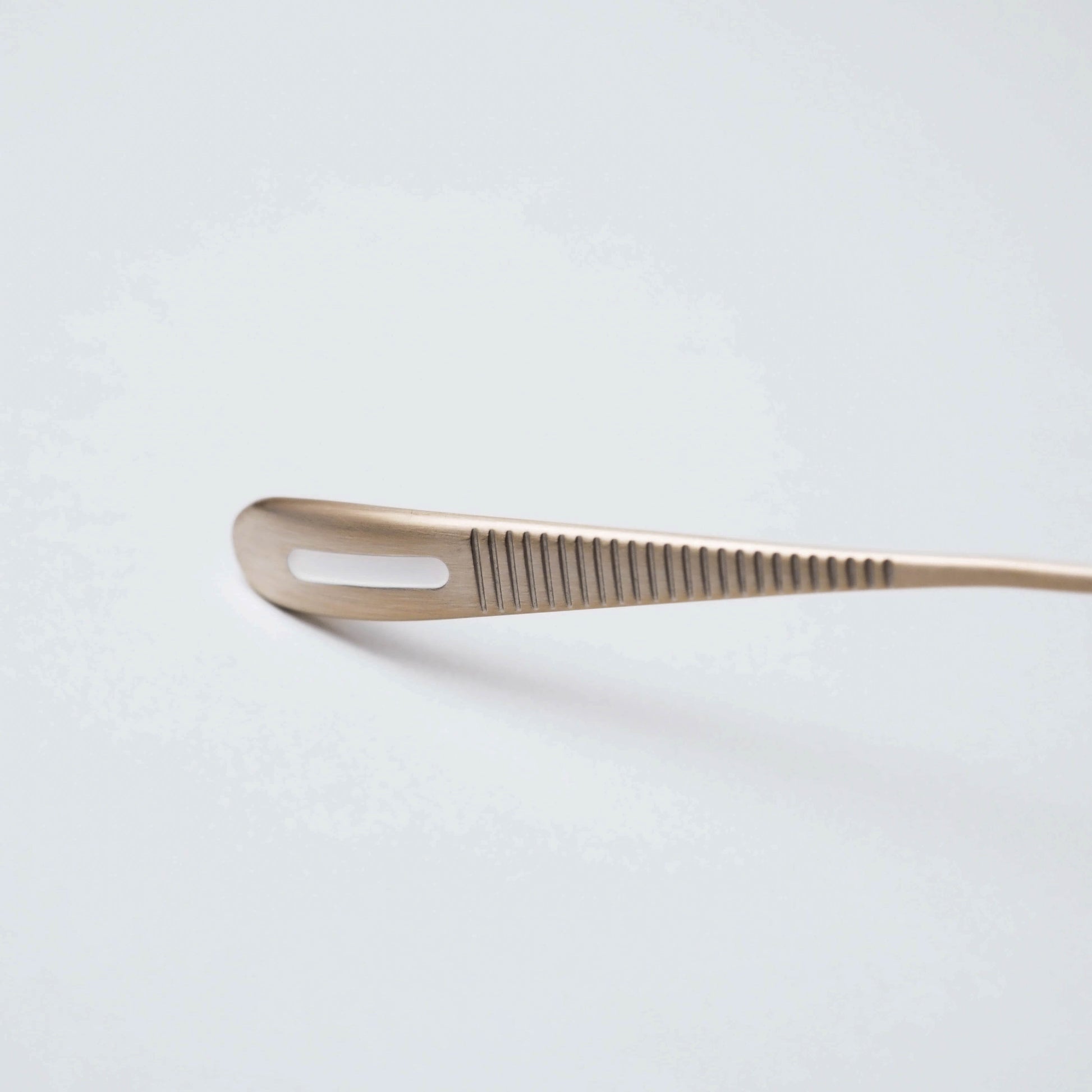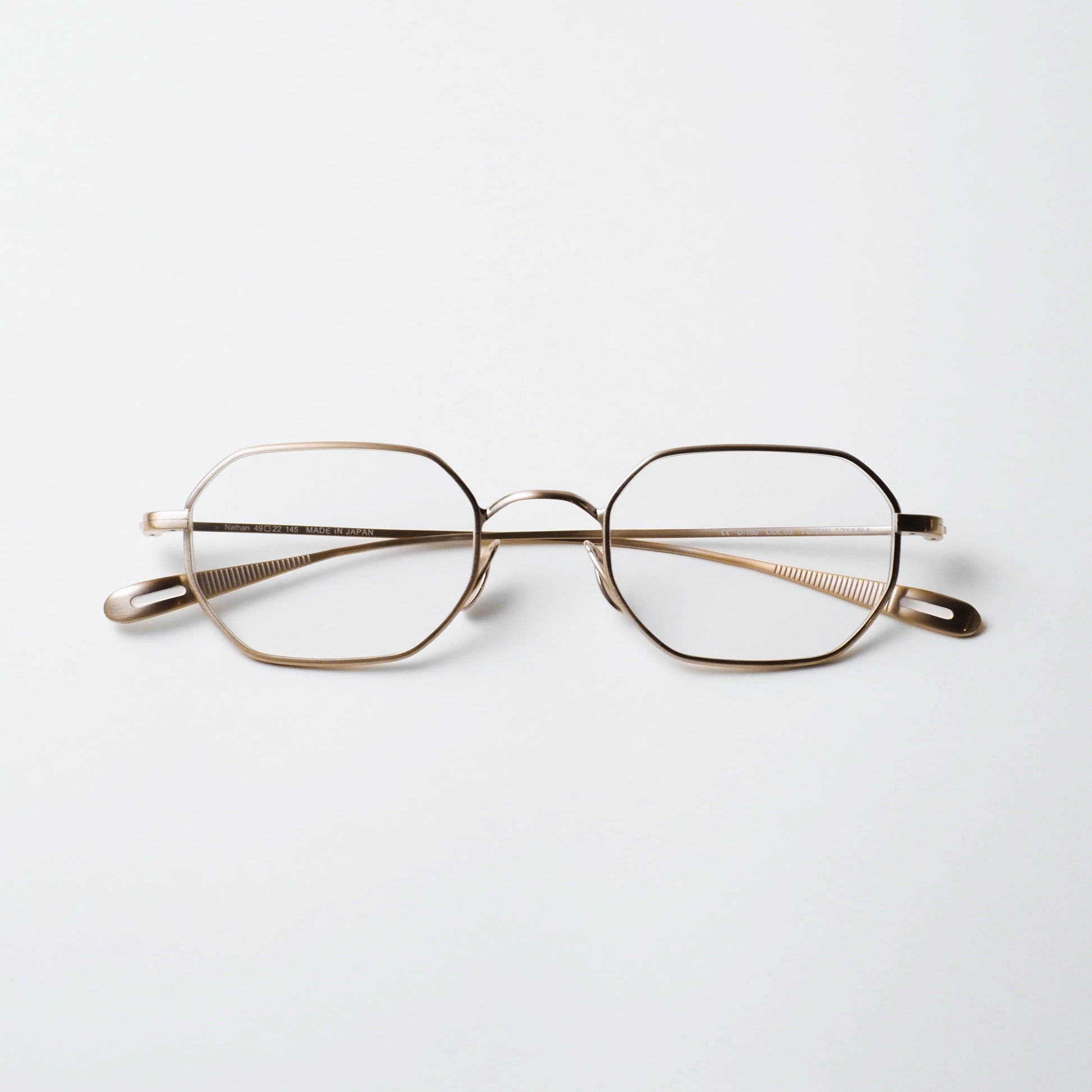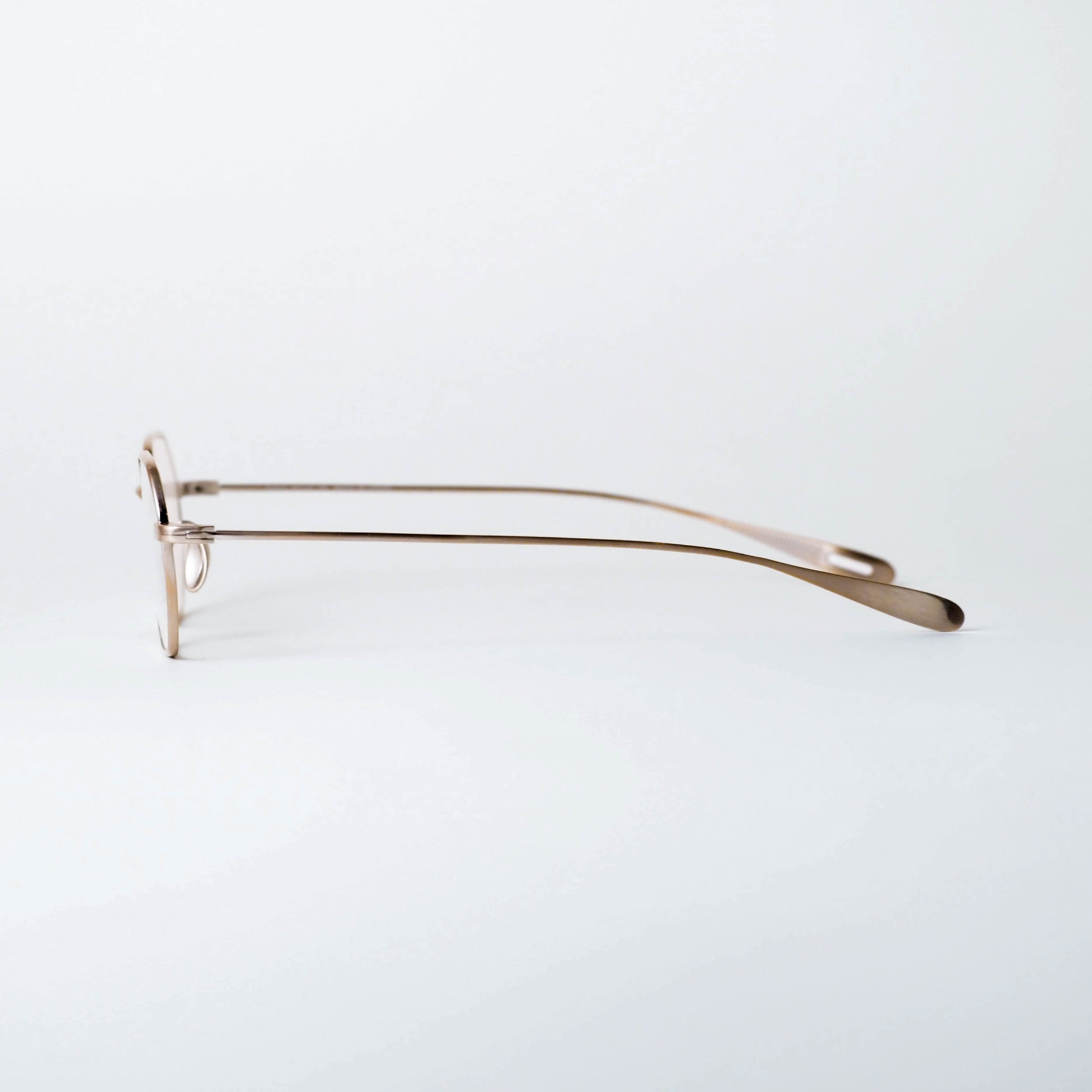 col.03「Omomuki」は、淡いアンティークゴールドのような色味を纏った、落ち着きのあるカラーリングが特徴。控えめな光沢感により、光の当たり方や角度によって繊細に表情を変え、メタルフレームに奥行きと上品な温度感をもたらします。