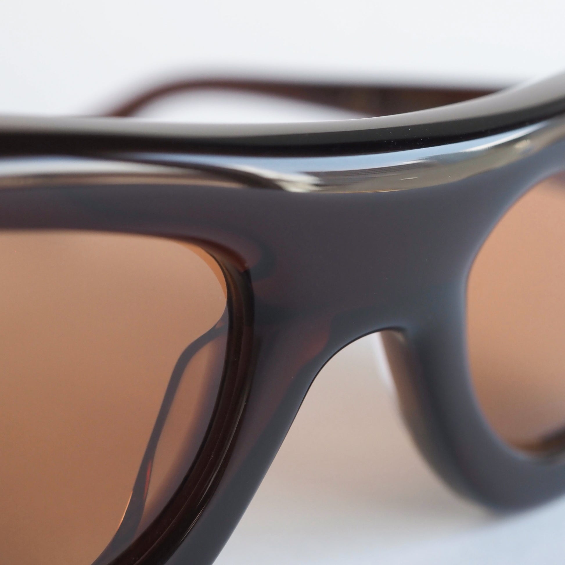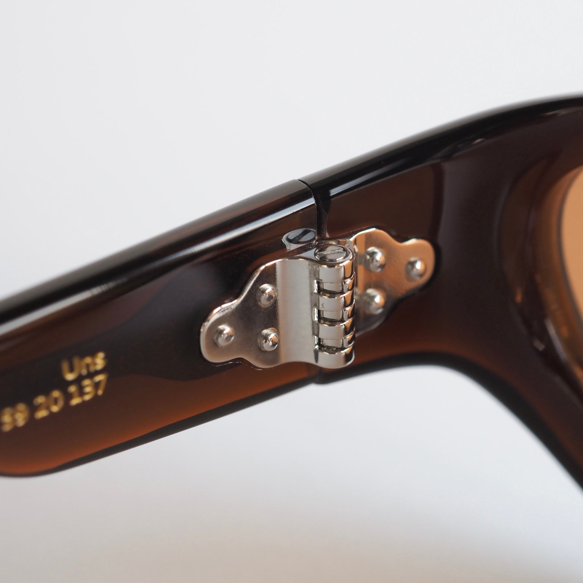 ハンドメイドによる厚みのあるアセテートフレームは、程よい存在感と掛け心地の良さを両立。