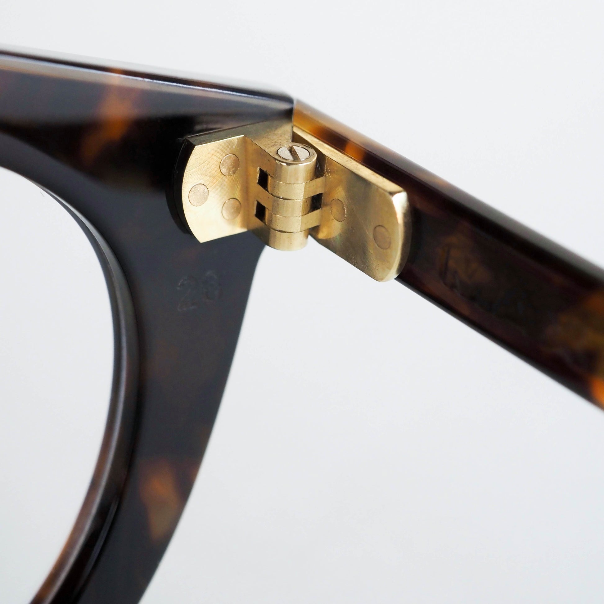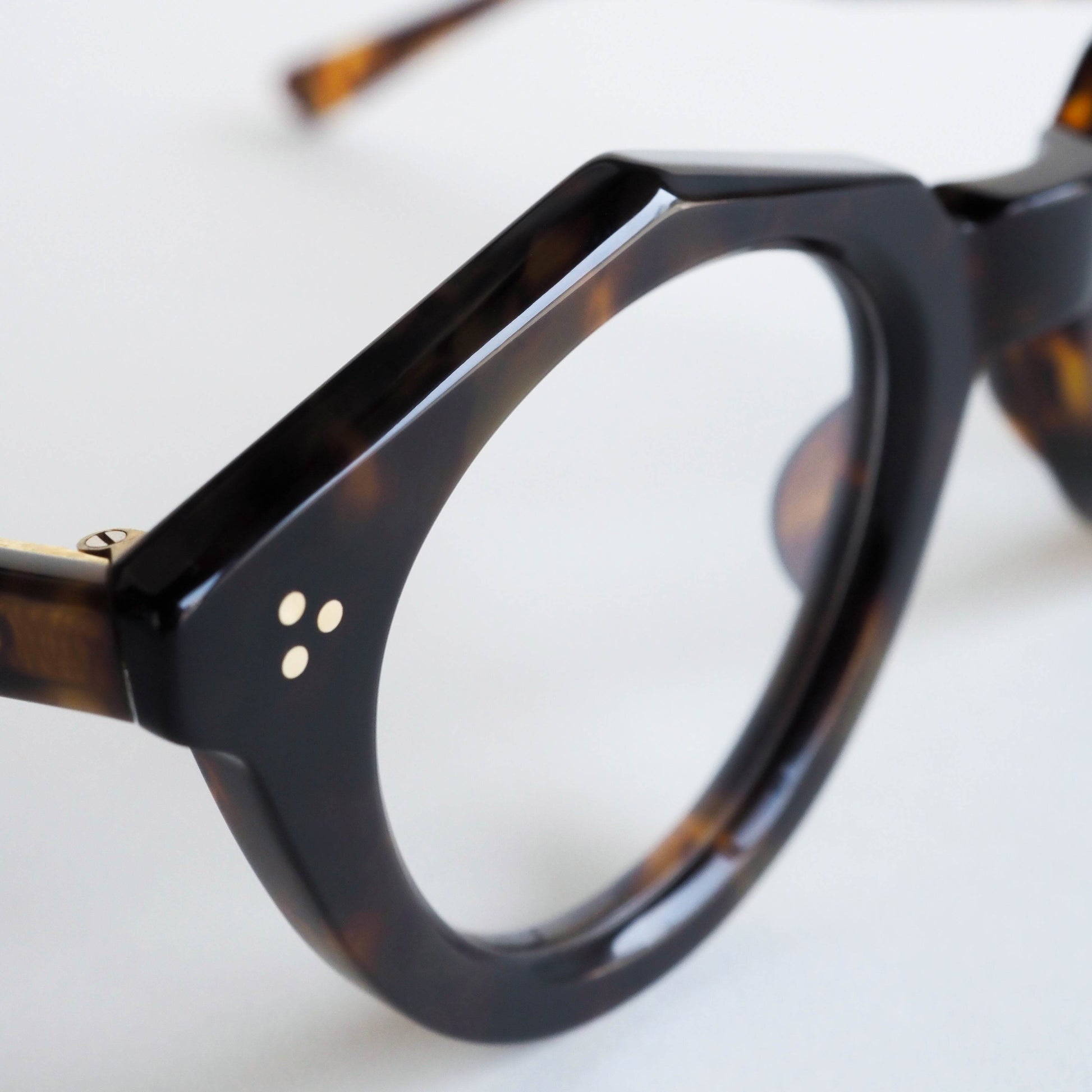 蝶番には、ヴィンテージアイウェアにも多く用いられてきた真鍮素材を採用。使い込むほどに風合いを増す経年変化も、このモデルならではの楽しみのひとつです。