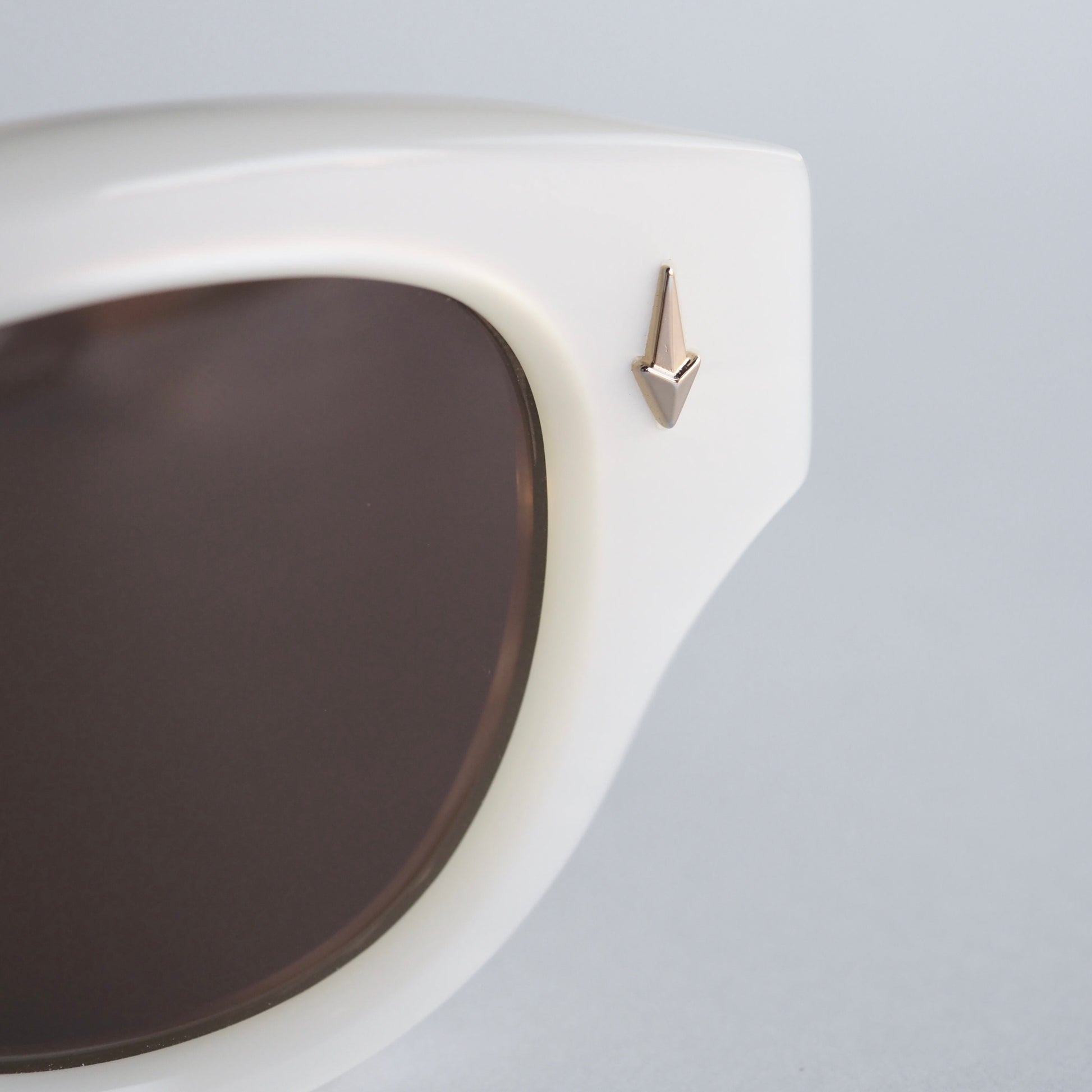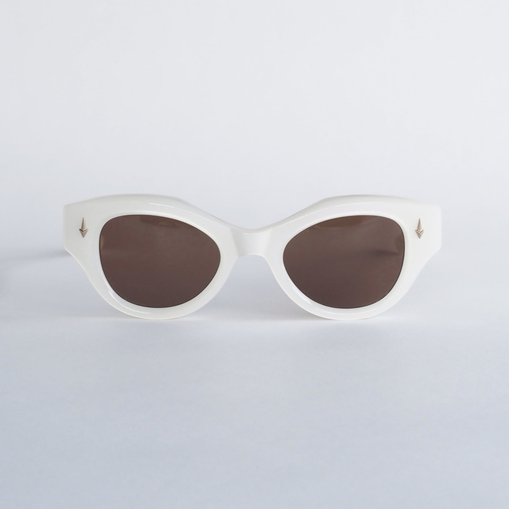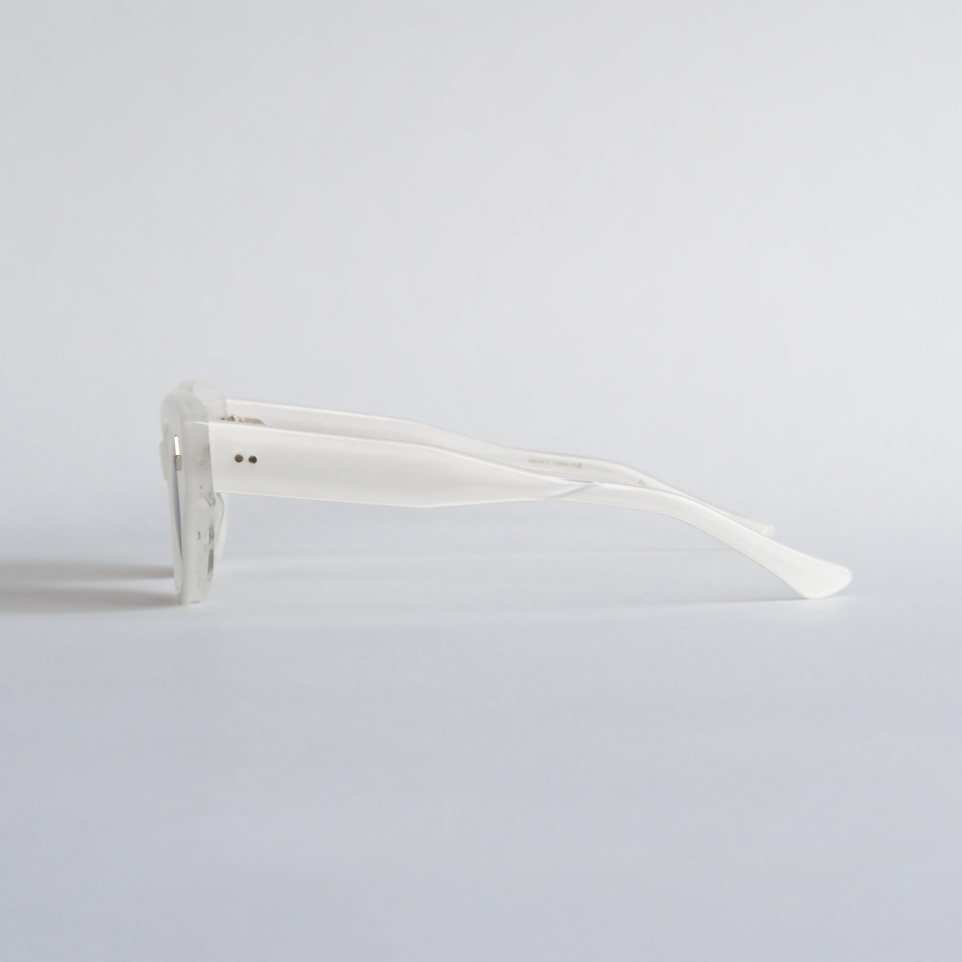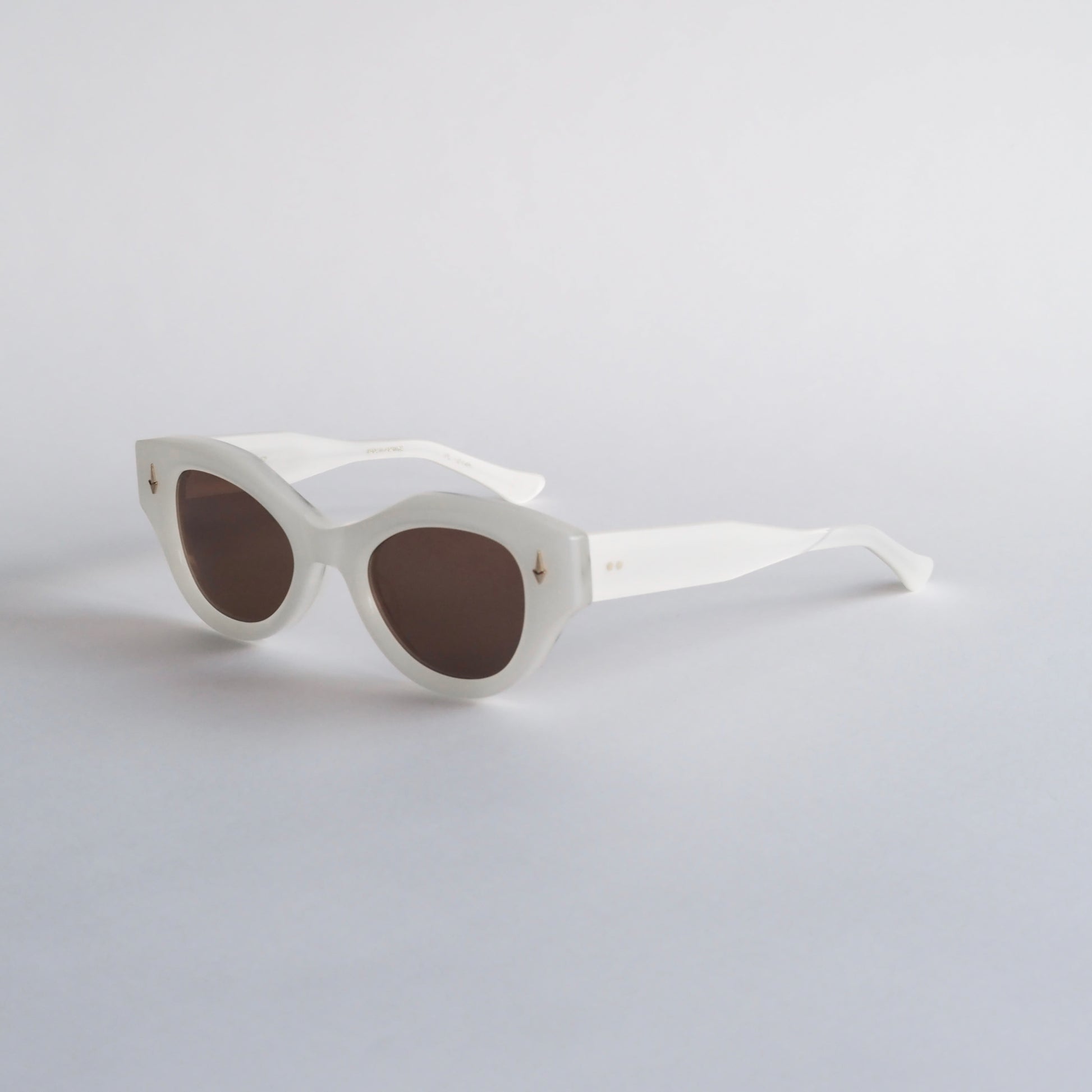 フレームには、艶のある高品質アセテートを採用。真っ白ではなく、光の角度でわずかに表情を変える“パールホワイト”の色調が、肌に自然に馴染みながら顔まわりを明るく演出します。