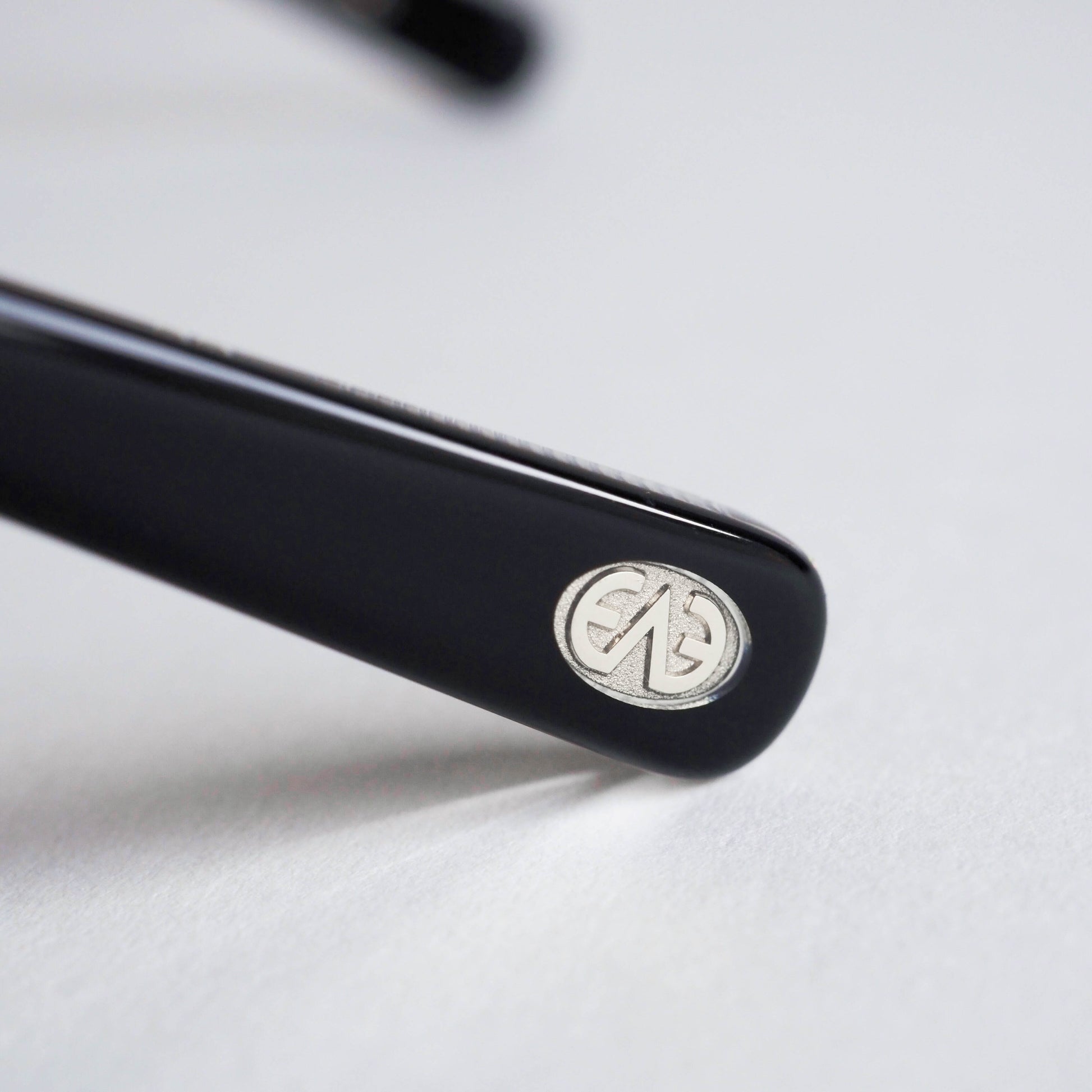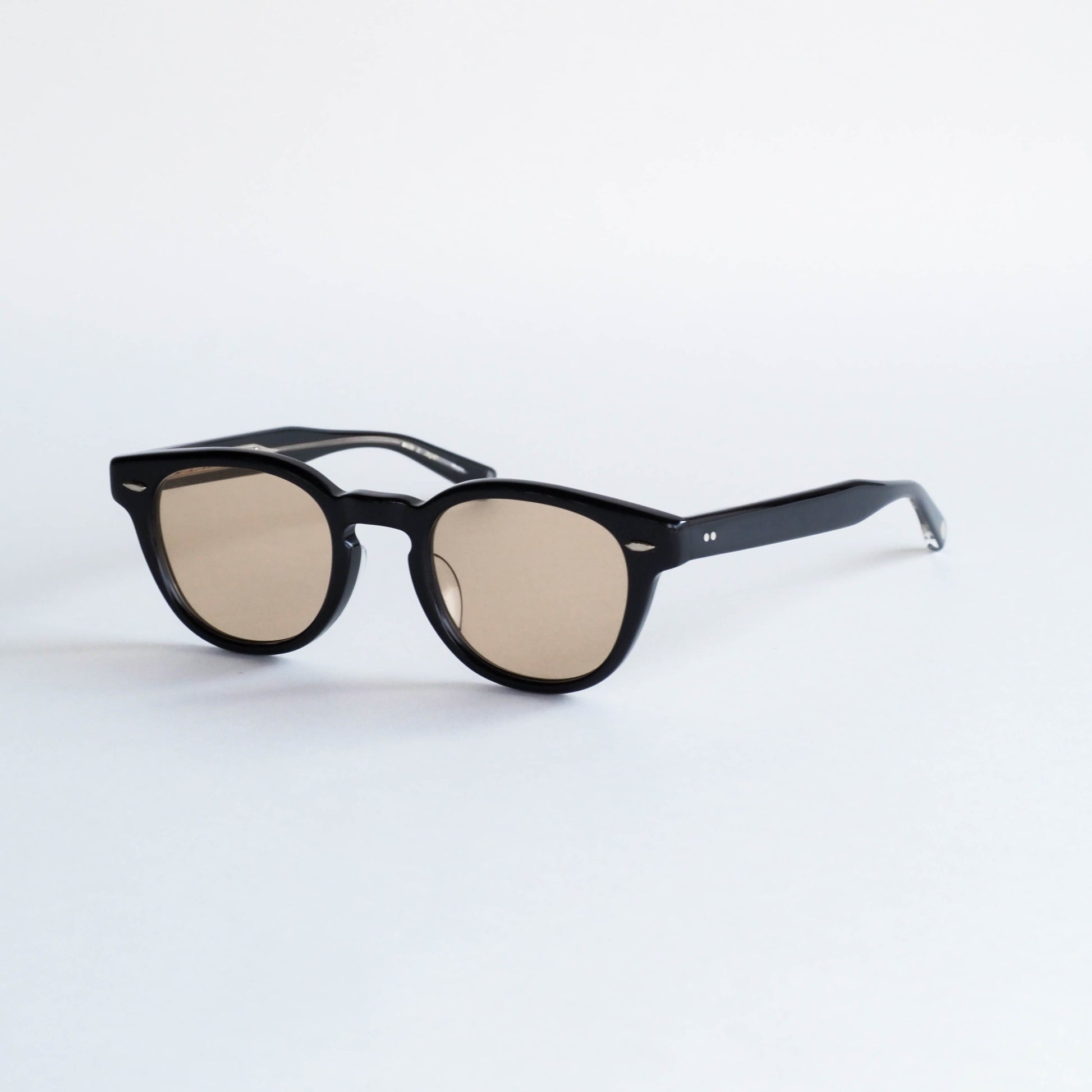 col.PBK-LT.BRは、ブラックアセテートのフロントにブラウンレンズを組み合わせた配色。