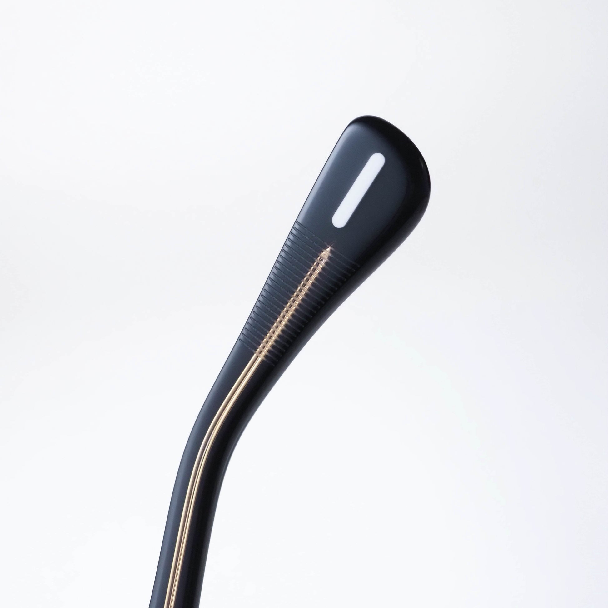 col.01(Black / Gold)は、艶のあるブラックにゴールドのインナーを組み合わせた仕様。重厚な黒縁の存在感に、内側から覗くゴールドが上品な華やかさを添えます。力強さと品の良さを併せ持つ一本です。