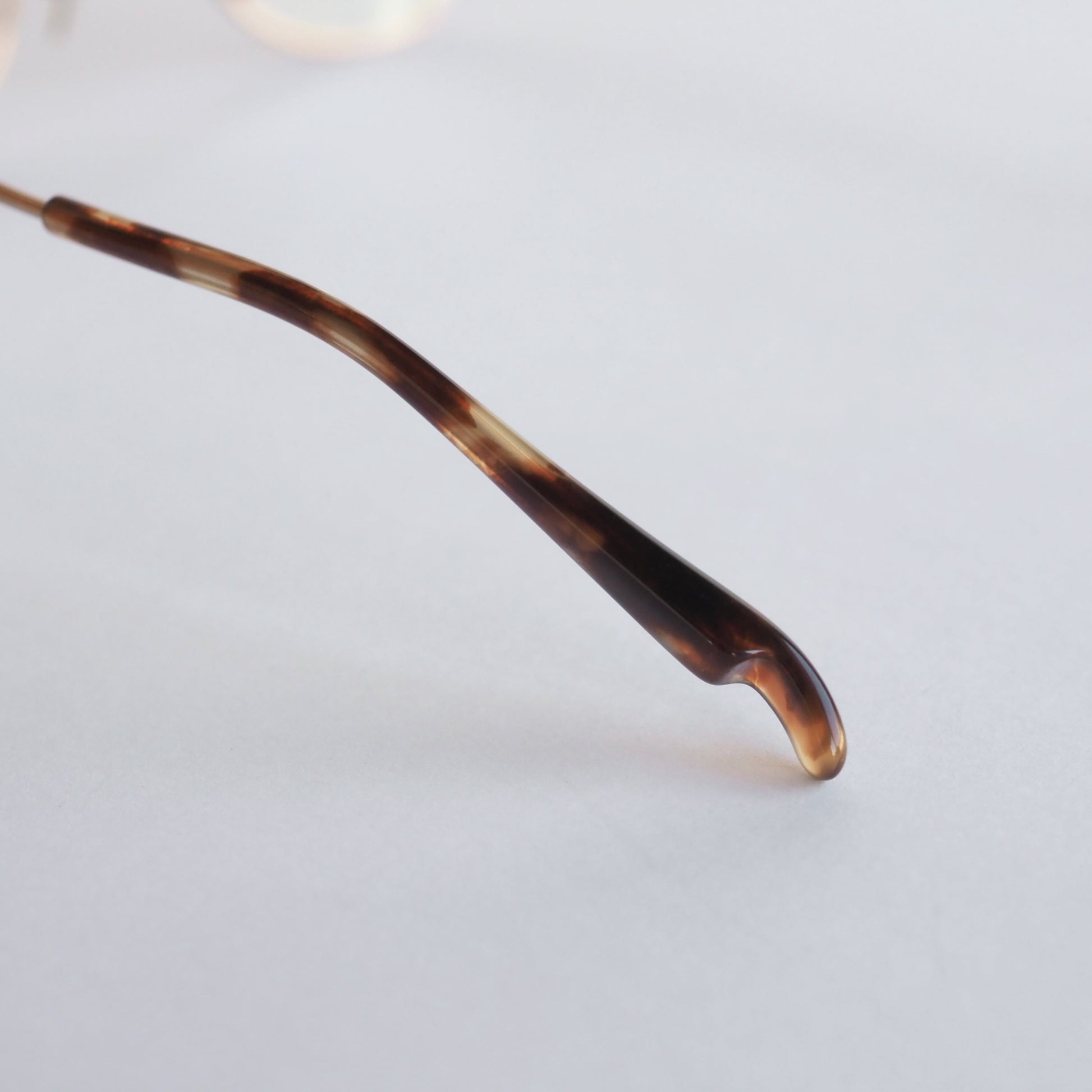 構造はオールチタン。リムやブリッジの接合部には一切の装飾を加えず、細部の設計精度と仕上げによって存在感を成立させています。フレームの剛性としなやかさのバランスも絶妙で、モードな印象を持ちながら、日常的にも掛けやすいフレームです。