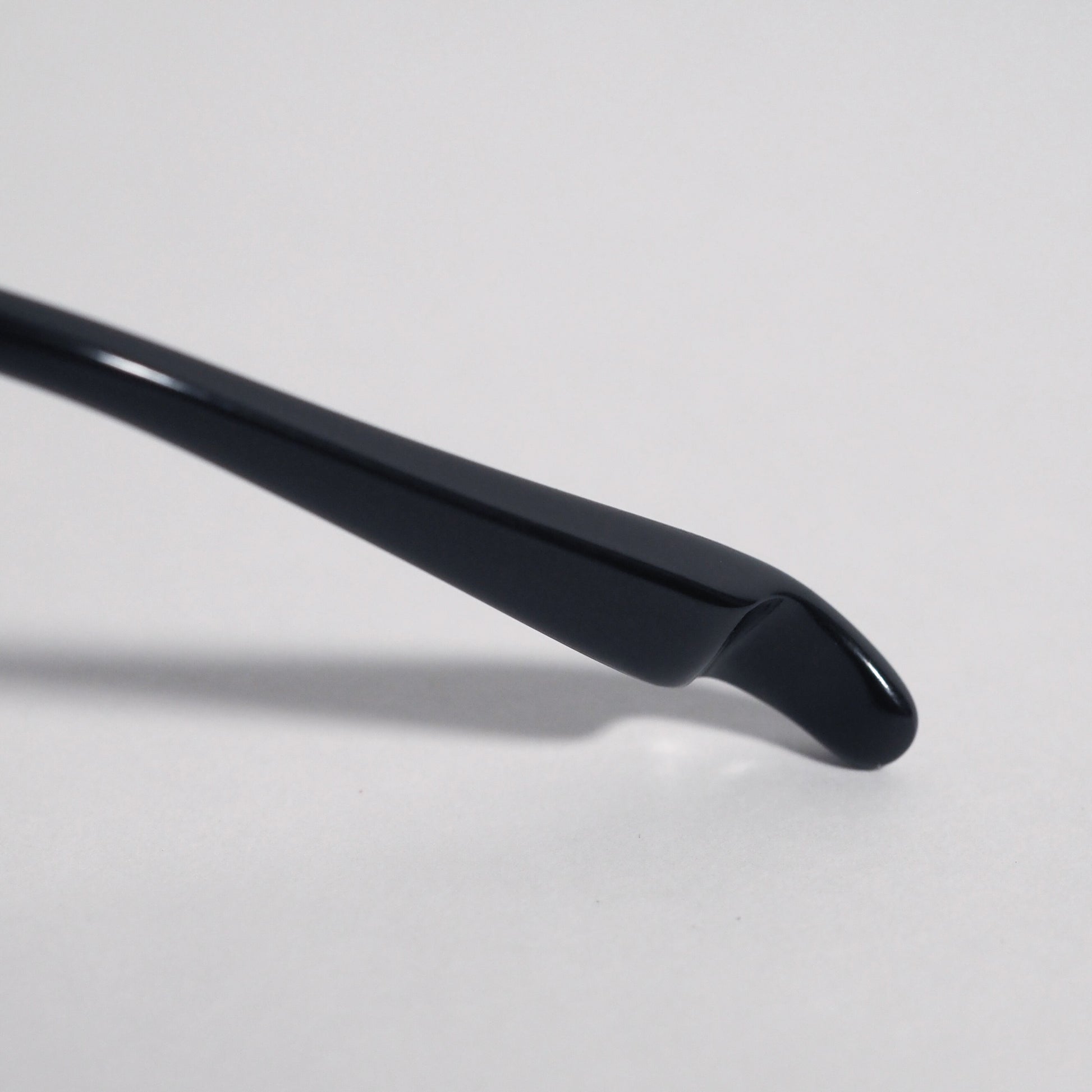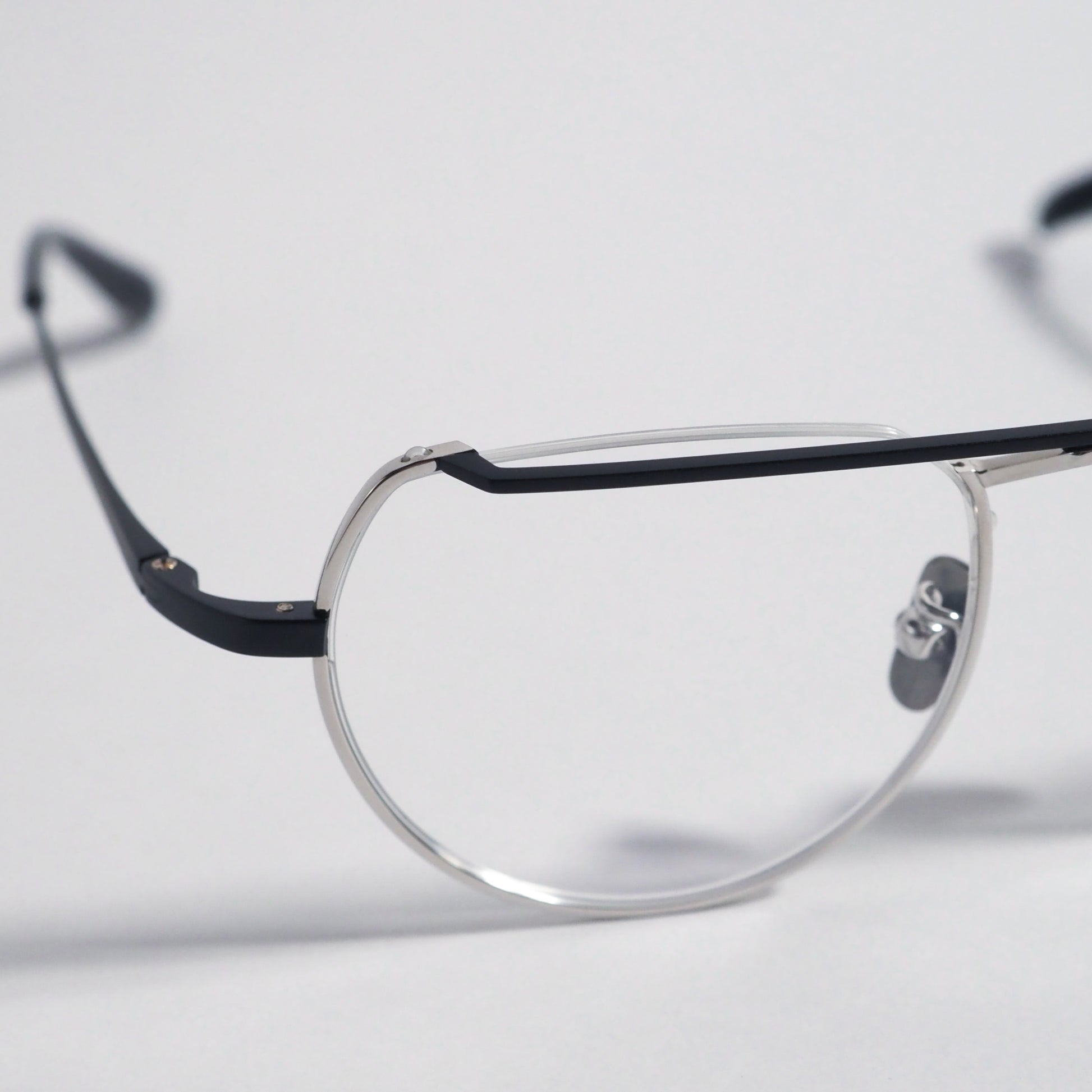 極細のピュアチタンで軽く、日常使いでも疲れにくい一本です。ブラックマットにシルバーの金属感を添えたcol.02は、表情を引き締めつつ強くなりすぎないバランスが魅力。個性の効いたデザインながら、装いを問わず自然にお顔に馴染みます。